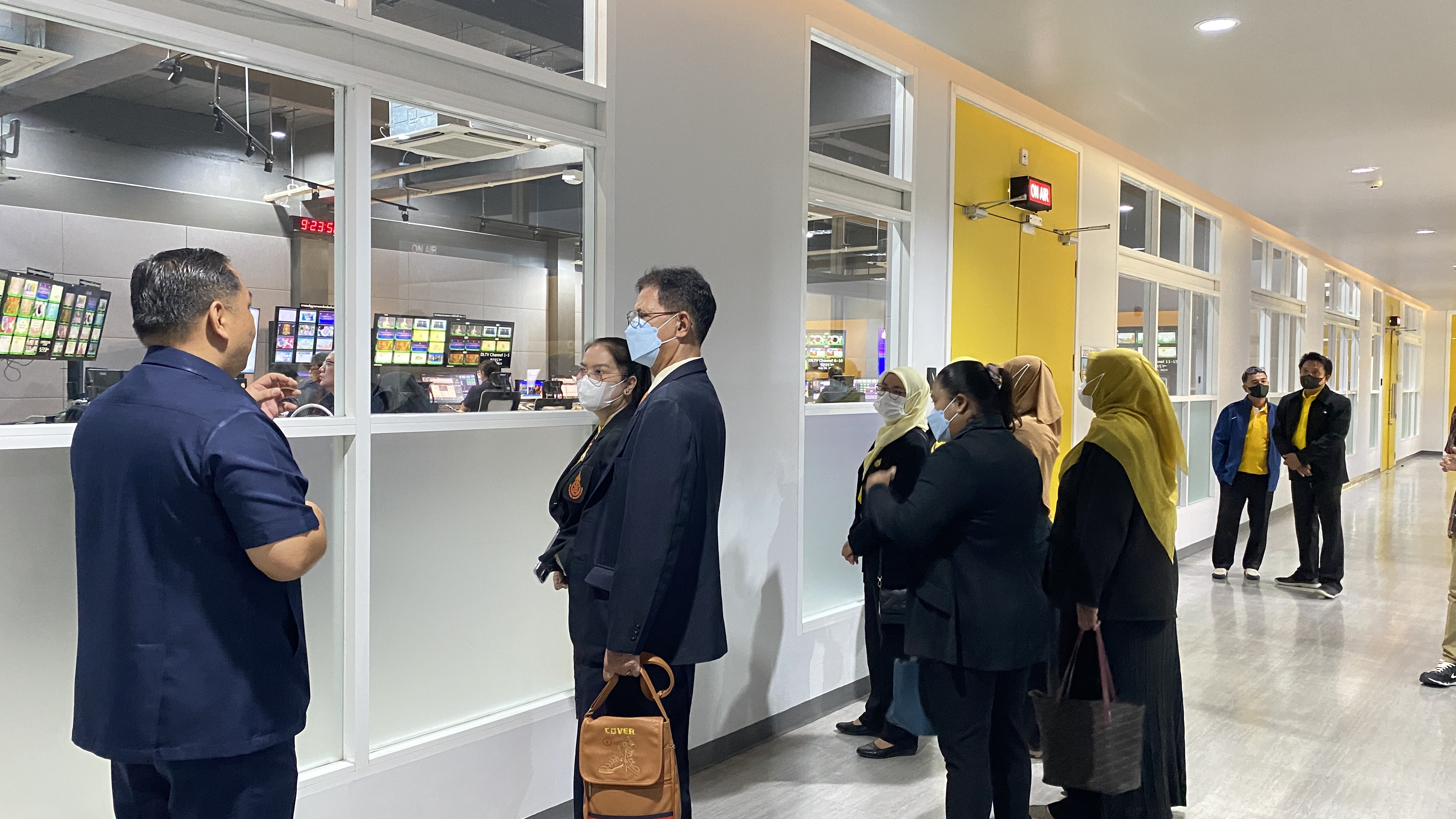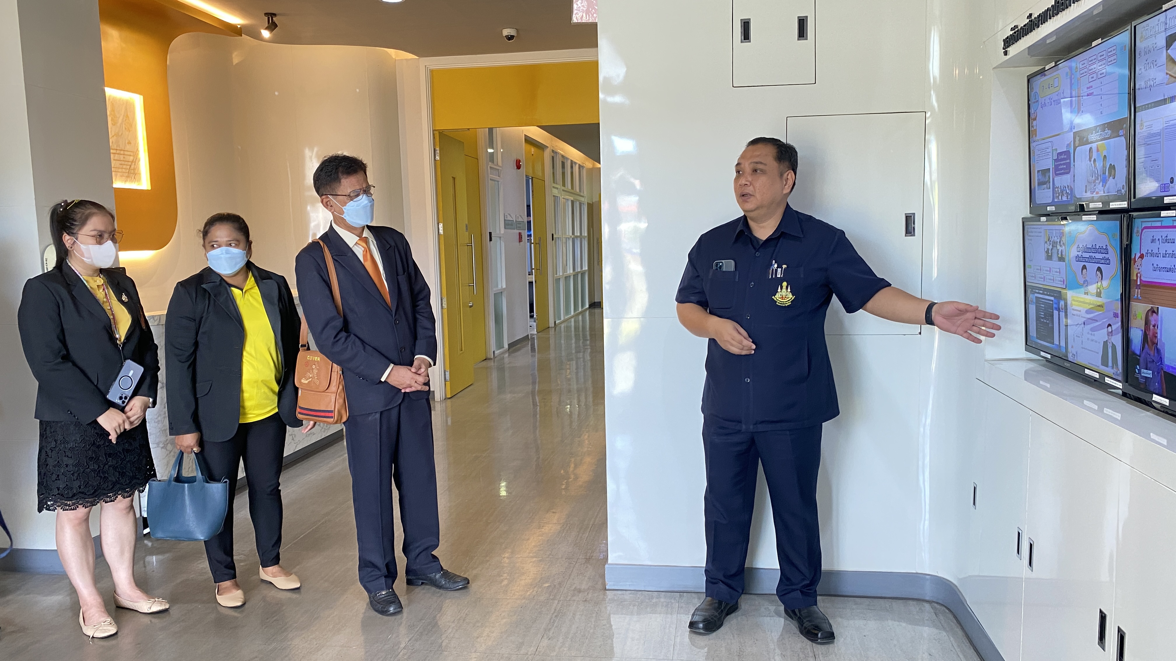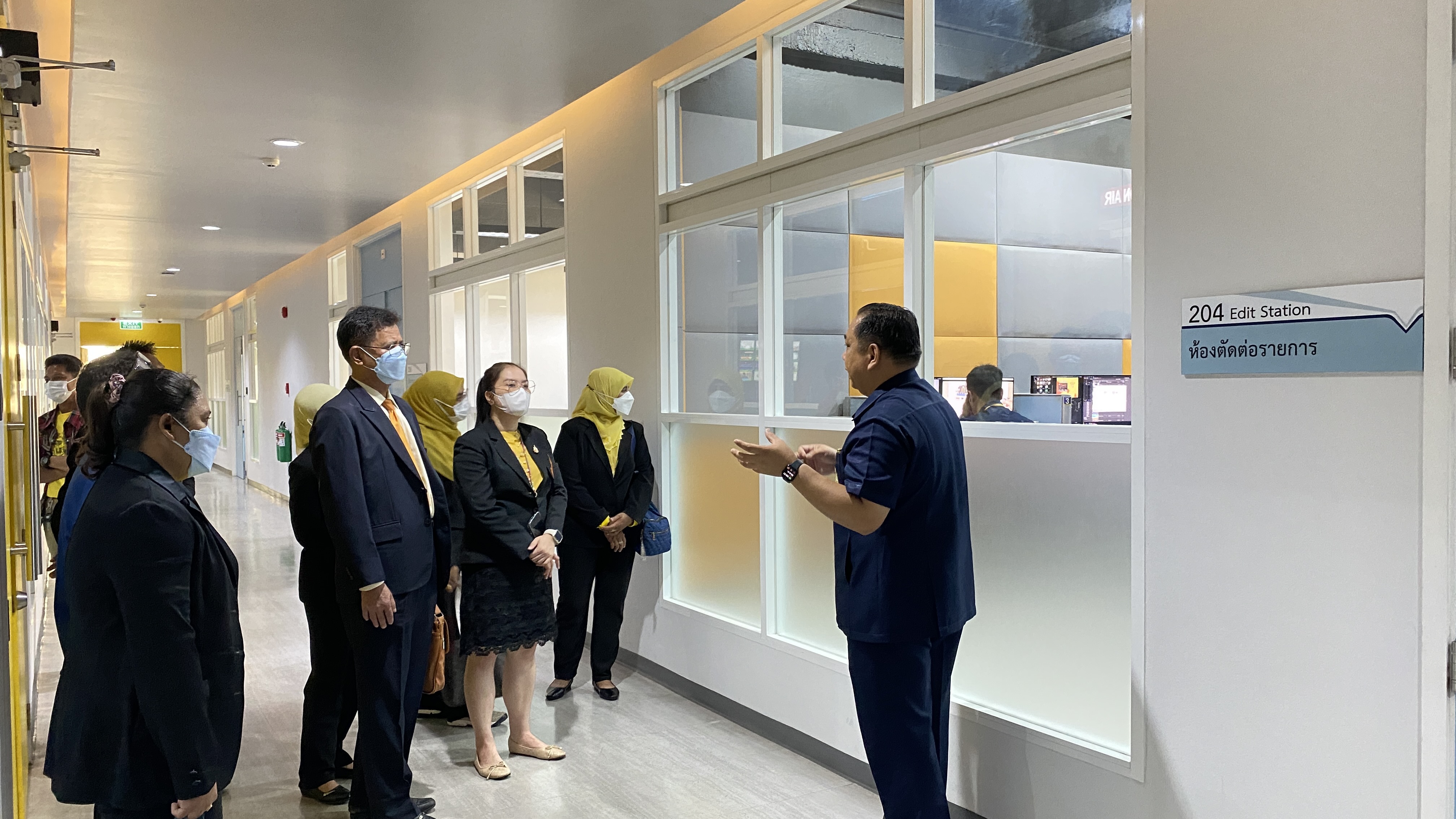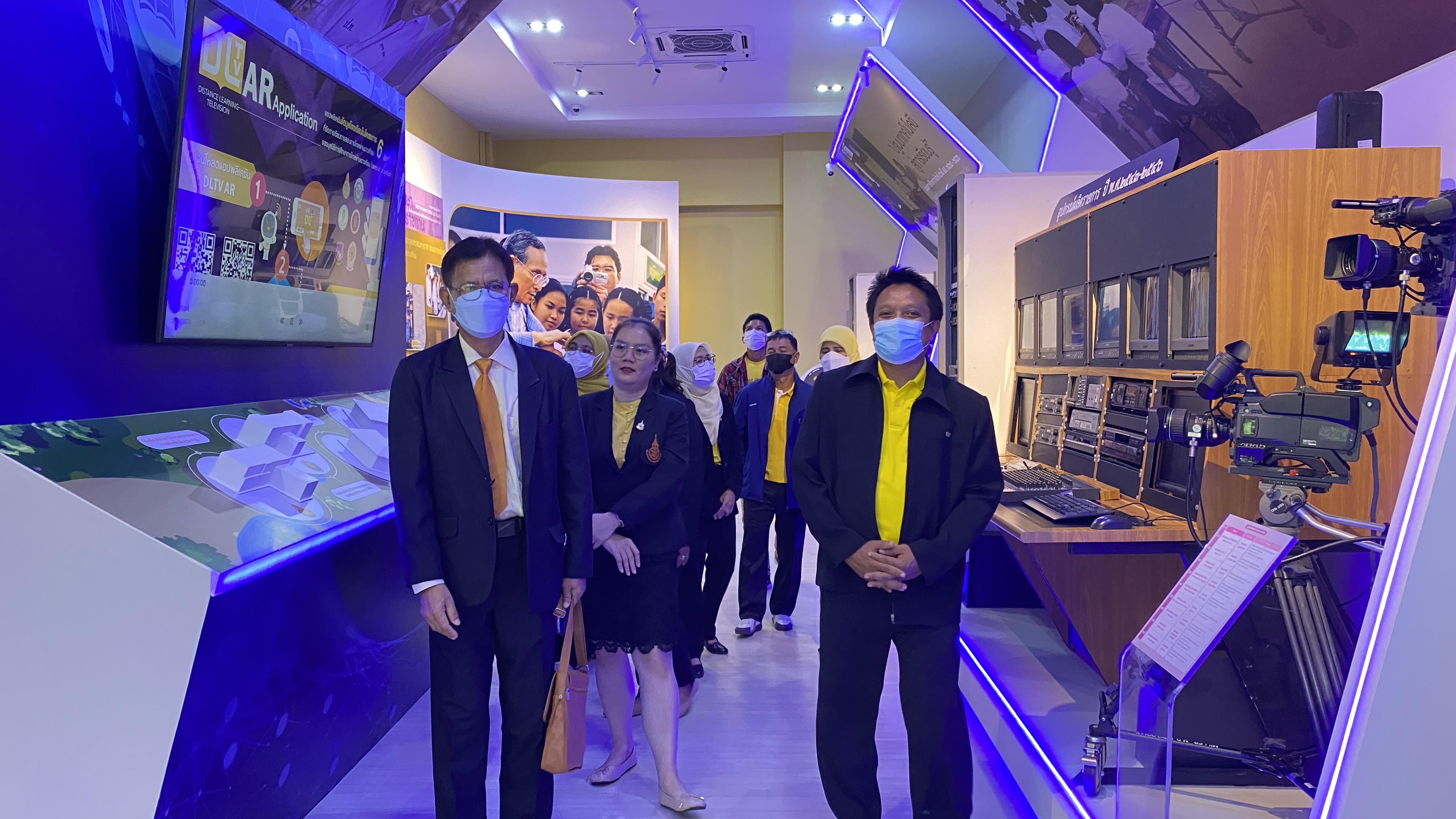 การนี้ ผู้ช่วยผู้อำนวยการสถานีฯ นำชมขั้นตอนการบันทึกรายการการเรียนการสอนทางไกลผ่านดาวเทียม และเยี่ยมชมการดำเนินงานของสถานีฯ ในส่วนงานฝ่ายสื่อการสอน ,ฝ่ายสารสนเทศและสื่อสารองค์กร ,ห้องควบคุมการบันทึกรายการ ,ห้องควบคุมการออกอากาศอัตโนมัติ ,ห้องตัดต่อรายการ ,ห้องบันทึกรายการฉากจริงและฉากเสมือนจริง ,ชมนิทรรศการประวัติความเป็นมา DLTV และรับชมวีดีทัศน์แนะนำมูลนิธิฯ พร้อมบรรยายสรุปการดำเนินงาน ณ ห้องประชุม 1 อาคารสถานีฯ