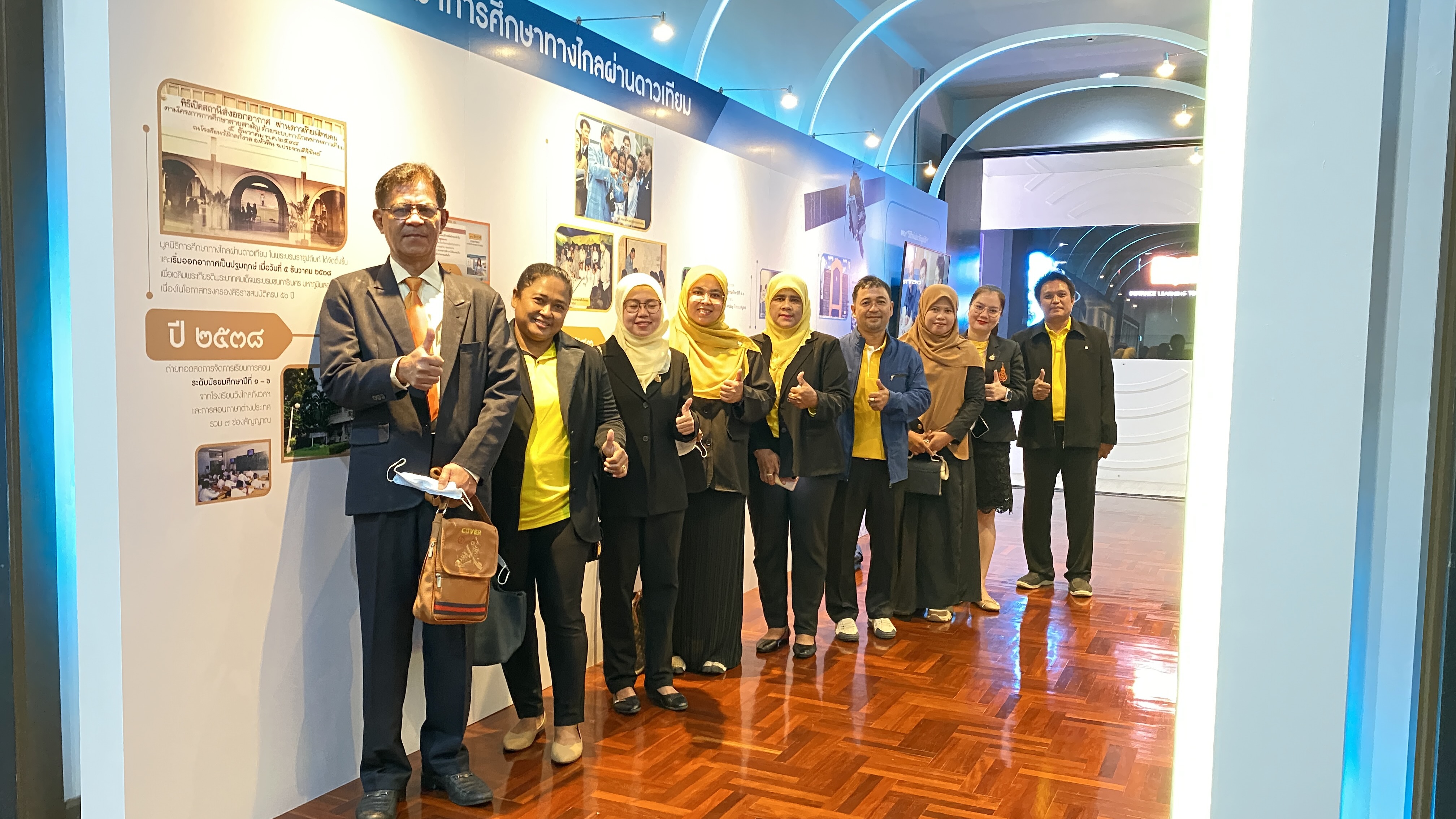 วันอังคารที่ 20 สิงหาคม 2567 เวลา 09.30 น. นางยุวนิตย์ ศรศิลป์ ผู้อำนวยการสถานีวิทยุโทรทัศน์การศึกษาทางไกลผ่านดาวเทียม พร้อมด้วย นายเกรียงไกร แสงทอง ผู้ช่วยผู้อำนวยการสถานีฯ ให้การต้อนรับ นายนววิธ รัตนนวน ผู้อำนวยการโรงเรียนบ้านกาแลกุมิ จังหวัดปัตตานี ในโอกาสนำคณะครูและบุคลากรทางการศึกษา จำนวน 9 คน เดินทางเข้าศึกษาดูงานการจัดการเรียนการสอนทางไกลผ่านดาวเทียม ของมูลนิธิการศึกษาทางไกลผ่านดาวเทียม ในพระบรมราชูปถัมภ์ ณ สถานีวิทยุโทรทัศน์การศึกษาทางไกลผ่านดาวเทียม อำเภอหัวหิน จังหวัดประจวบคีรีขันธ์ เพื่อแลกเปลี่ยนเรียนรู้ประสบการณ์ด้านการจัดการเรียนการสอนและรับทราบขั้นตอนกระบวนการผลิตรายการการเรียนการสอนทางไกลผ่านดาวเทียม