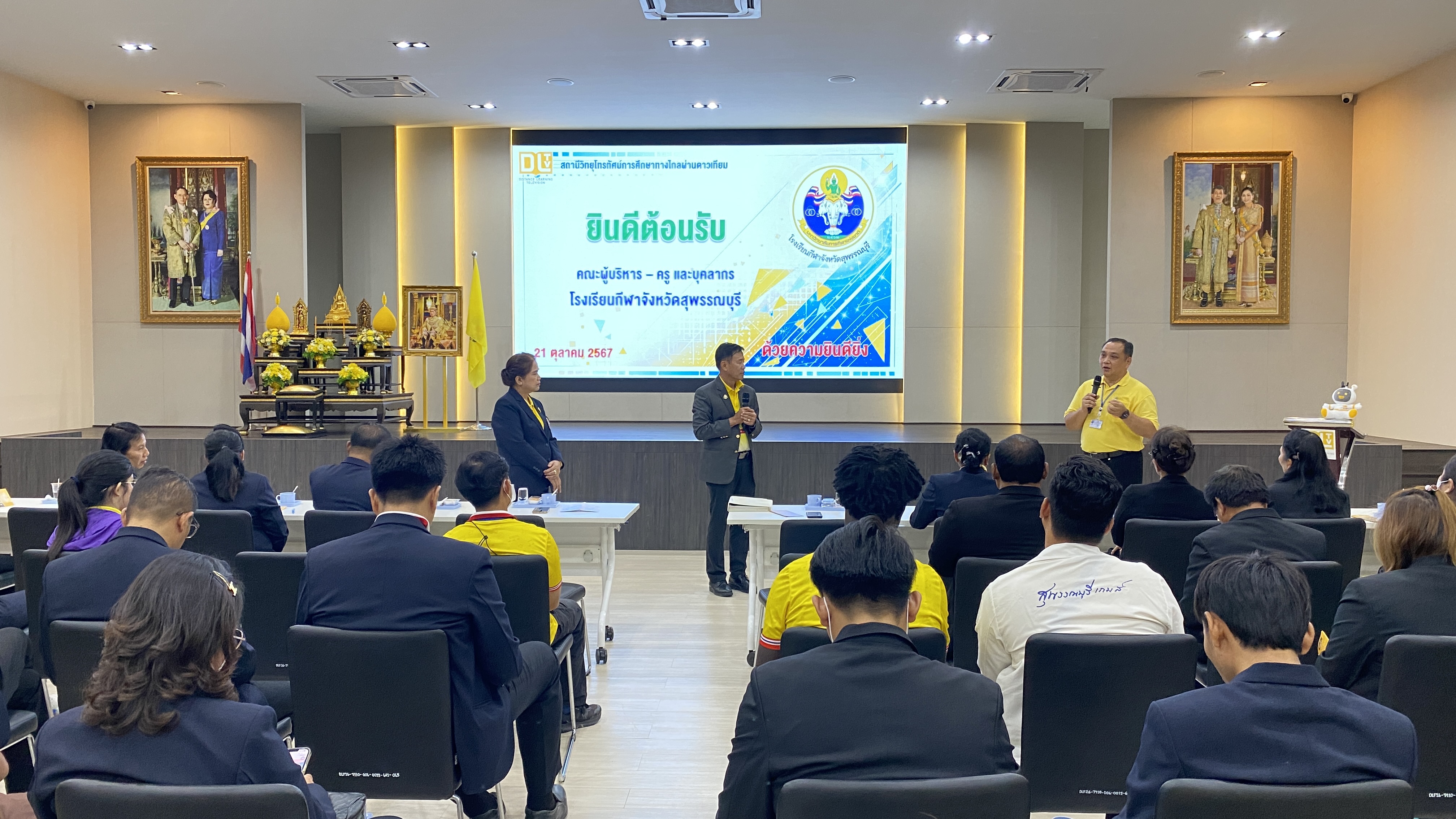 วันจันทร์ที่ 21 ตุลาคม 2567 เวลา 13.00 น. นายเกรียงไกร แสงทอง ผู้ช่วยผู้อำนวยการสถานีวิทยุโทรทัศน์การศึกษาทางไกลผ่านดาวเทียม ให้การต้อนรับ นางสมจิต บุญคงเสน ผู้อำนวยการโรงเรียนกีฬาจังหวัดสุพรรณบุรี ในโอกาสนำคณะครูและบุคลากรทางการศึกษา จำนวน 60 คนเข้าศึกษาดูงาน การดำเนินงานของมูลนิธิการศึกษาทางไกลผ่านดาวเทียม ในพระบรมราชูปถัมภ์ ณ สถานีวิทยุโทรทัศน์การศึกษาทางไกลผ่านดาวเทียม อำเภอหัวหิน จังหวัดประจวบคีรีขันธ์ เพื่อนำรูปแบบการจัดการเรียนการสอนด้านการศึกษาทางไกลผ่านดาวเทียมของมูลนิธิฯ ไปใช้กับนักเรียนของโรงเรียนกีฬาจังหวัดสุพรรณบุรีที่ต้องเดินทางไปเก็บตัวฝึกซ้อมกีฬานอกโรงเรียนหรือไปแข่งขันกีฬาต่างประเทศเป็นระยะเวลานาน และเพื่อเป็นการเปิดโลกทัศน์ให้คณะครูได้รับความรู้และประสบการณ์จากสถานที่จริง