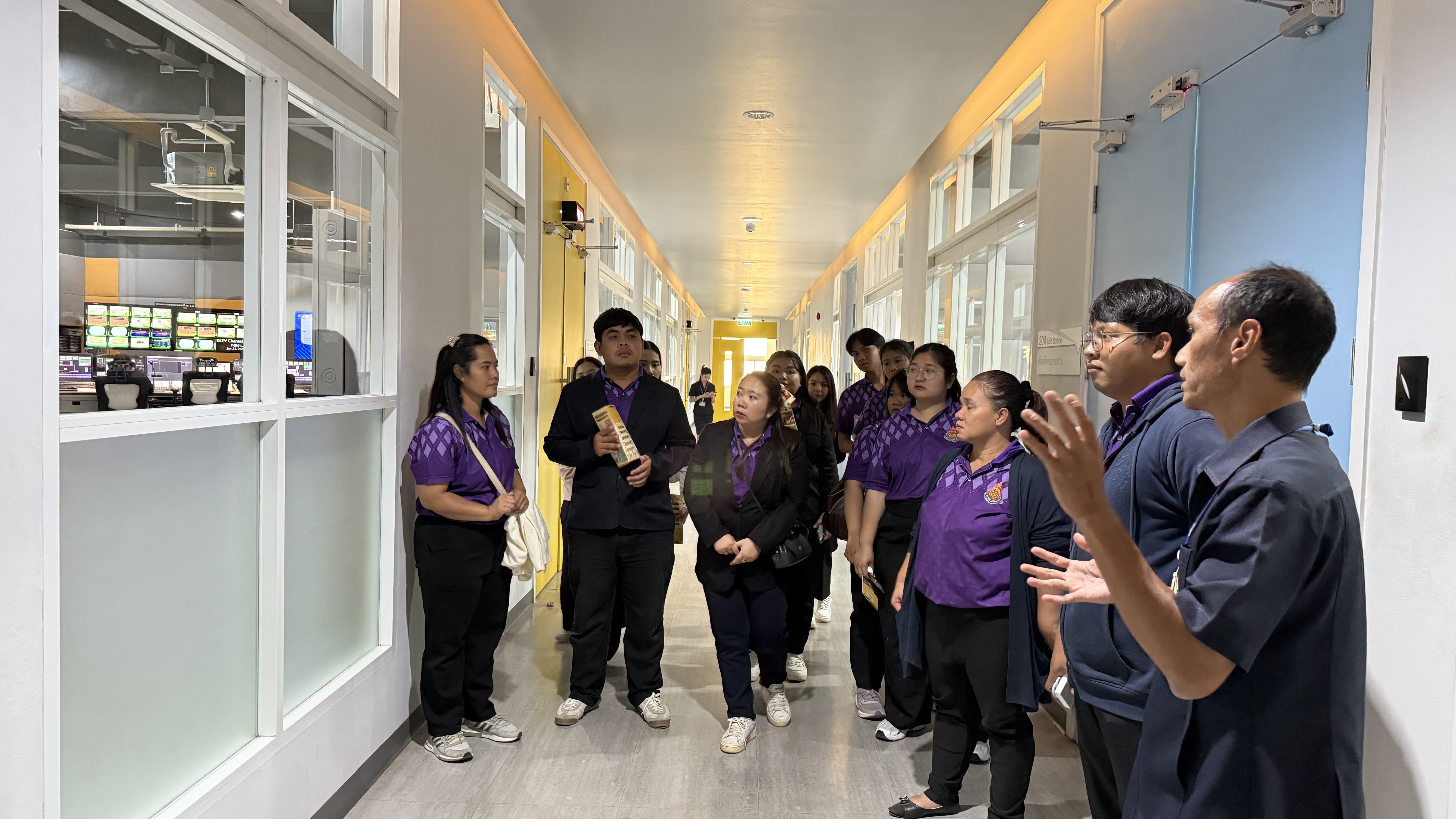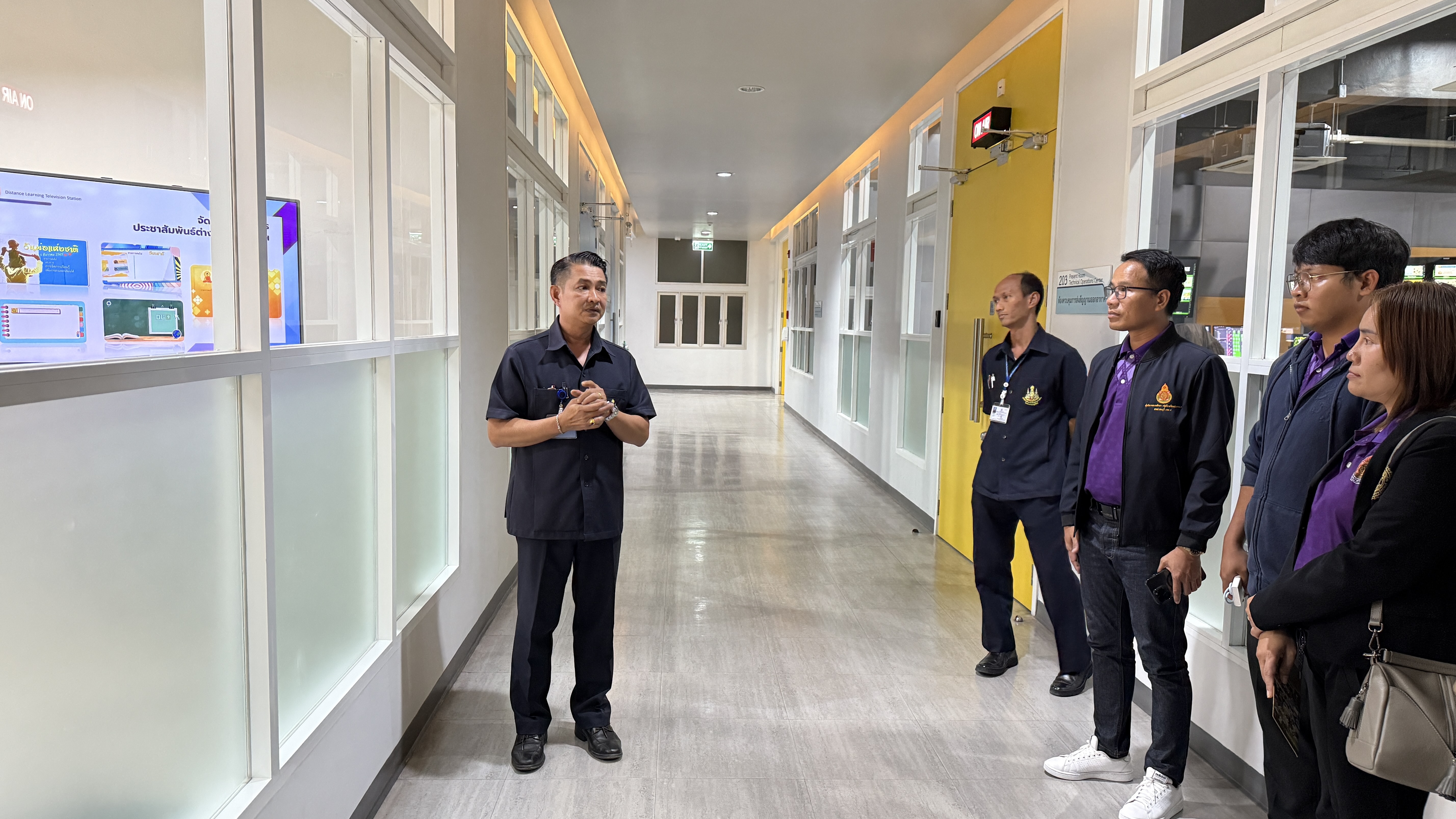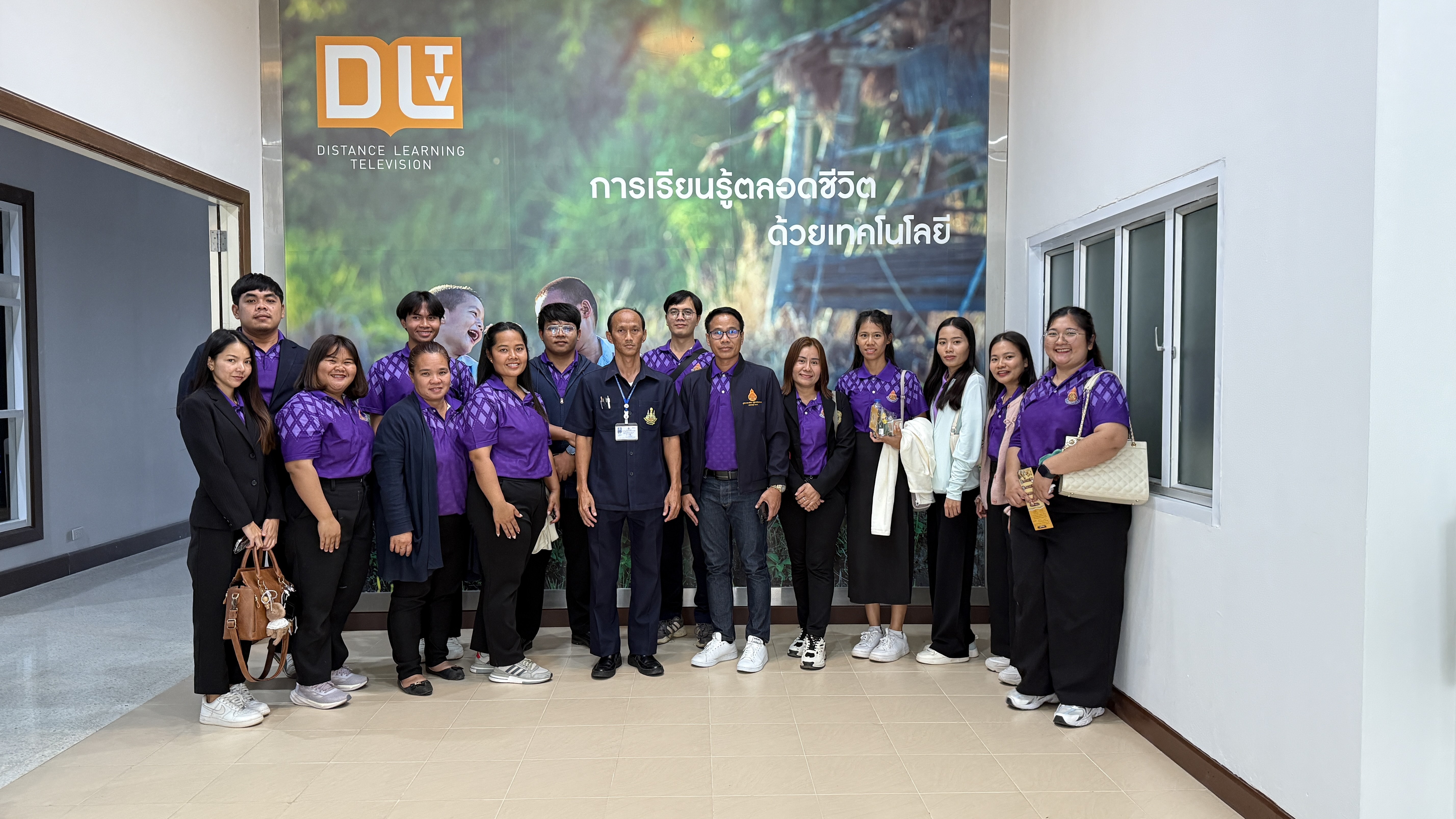 การนี้ นายณัฐพงษ์ สวัสดี หัวหน้าฝ่ายสารสนเทศและสื่อสารองค์กร พร้อมด้วย นายสมมาตย์ พันธุ์เฮง หัวหน้าฝ่ายรายการ นำคณะเยี่ยมชมการดำเนินงานของสถานีฯ ด้านการผลิตรายการ การจัดทำสื่อการสอน การนำรายการเข้าสู่ระบบ การตัดต่อรายการ การจัดผังรายการ และการส่งสัญญาณออกอากาศผ่านดาวเทียม จากนั้นเยี่ยมชมห้องบันทึกรายการฉากจริง ฉากเสมือนจริง และเยี่ยมชมนิทรรศการประวัติความเป็นมา DLTV