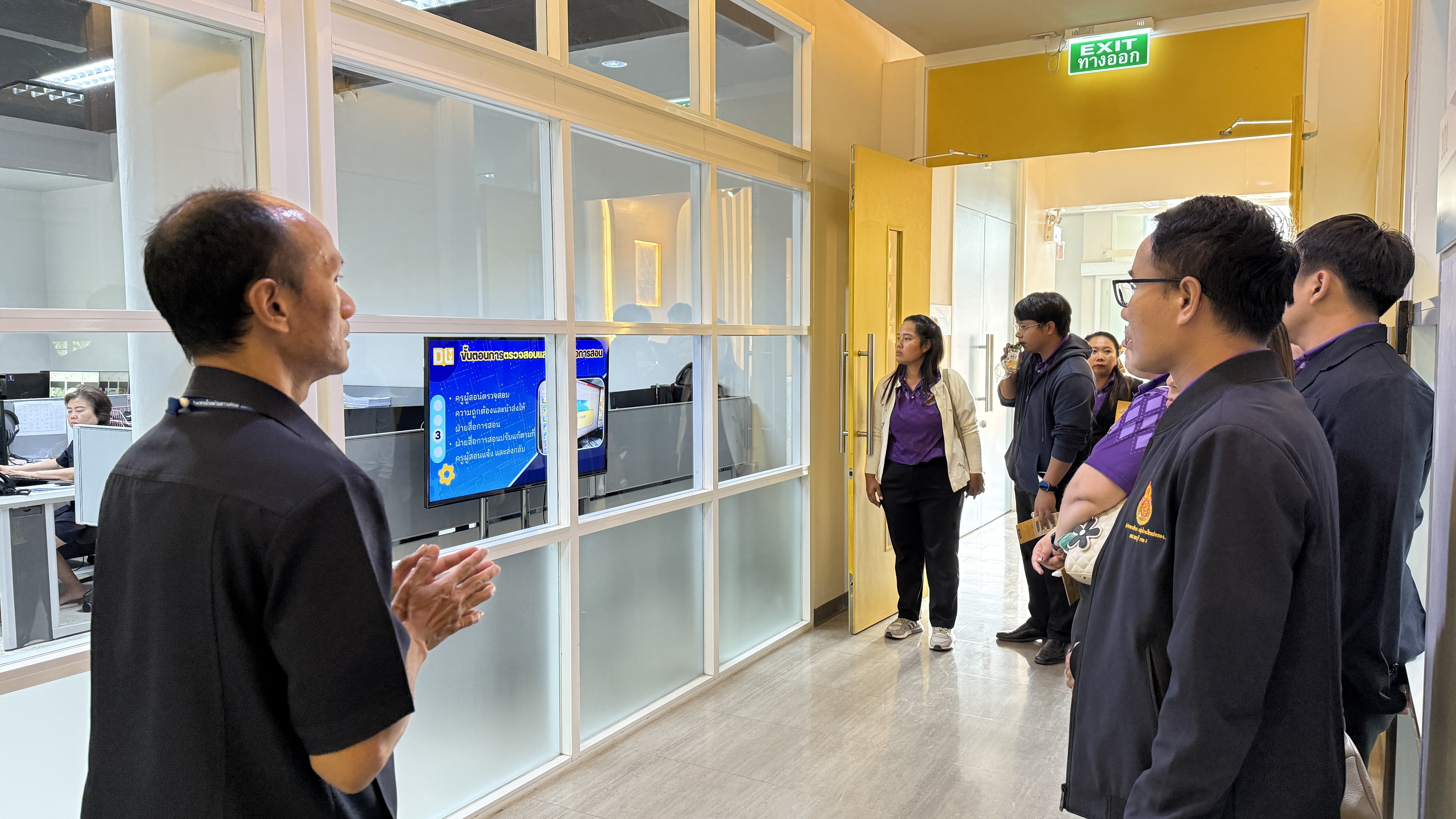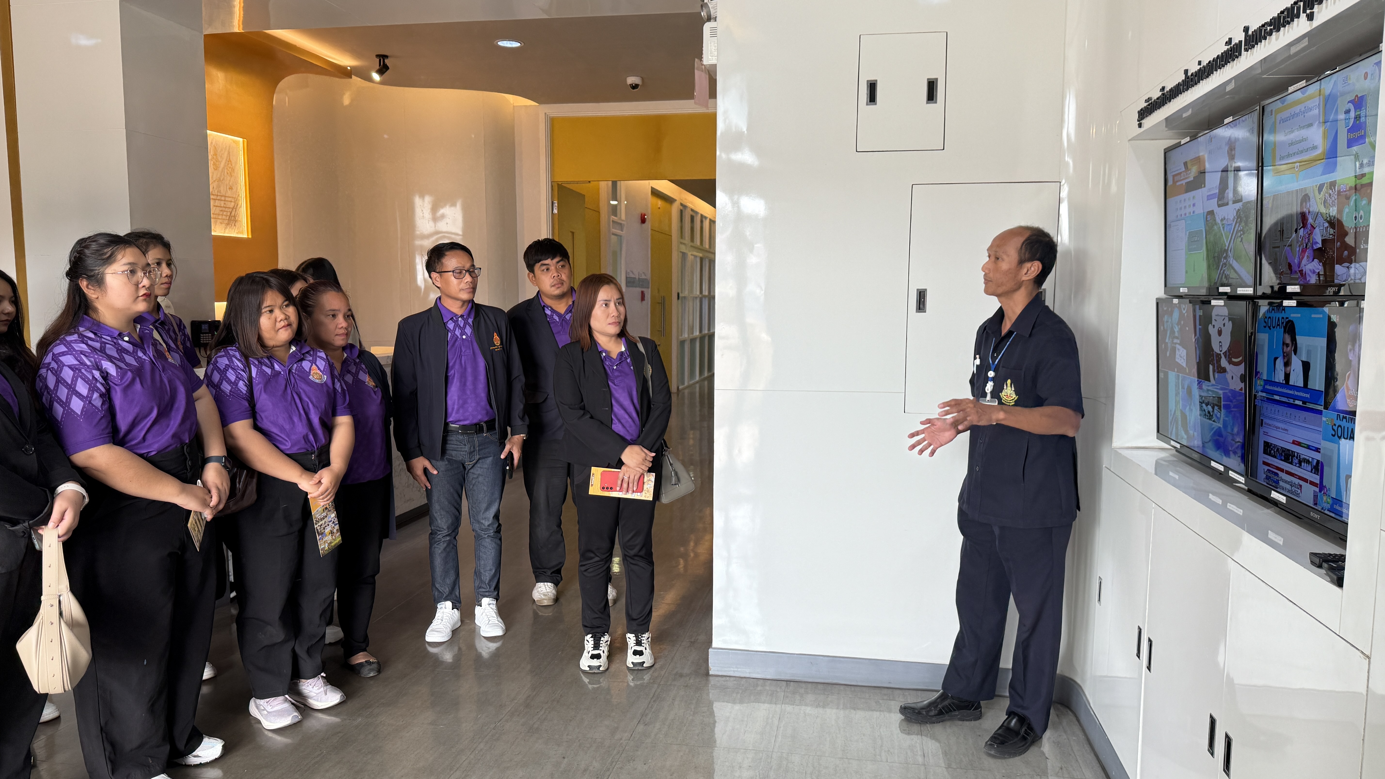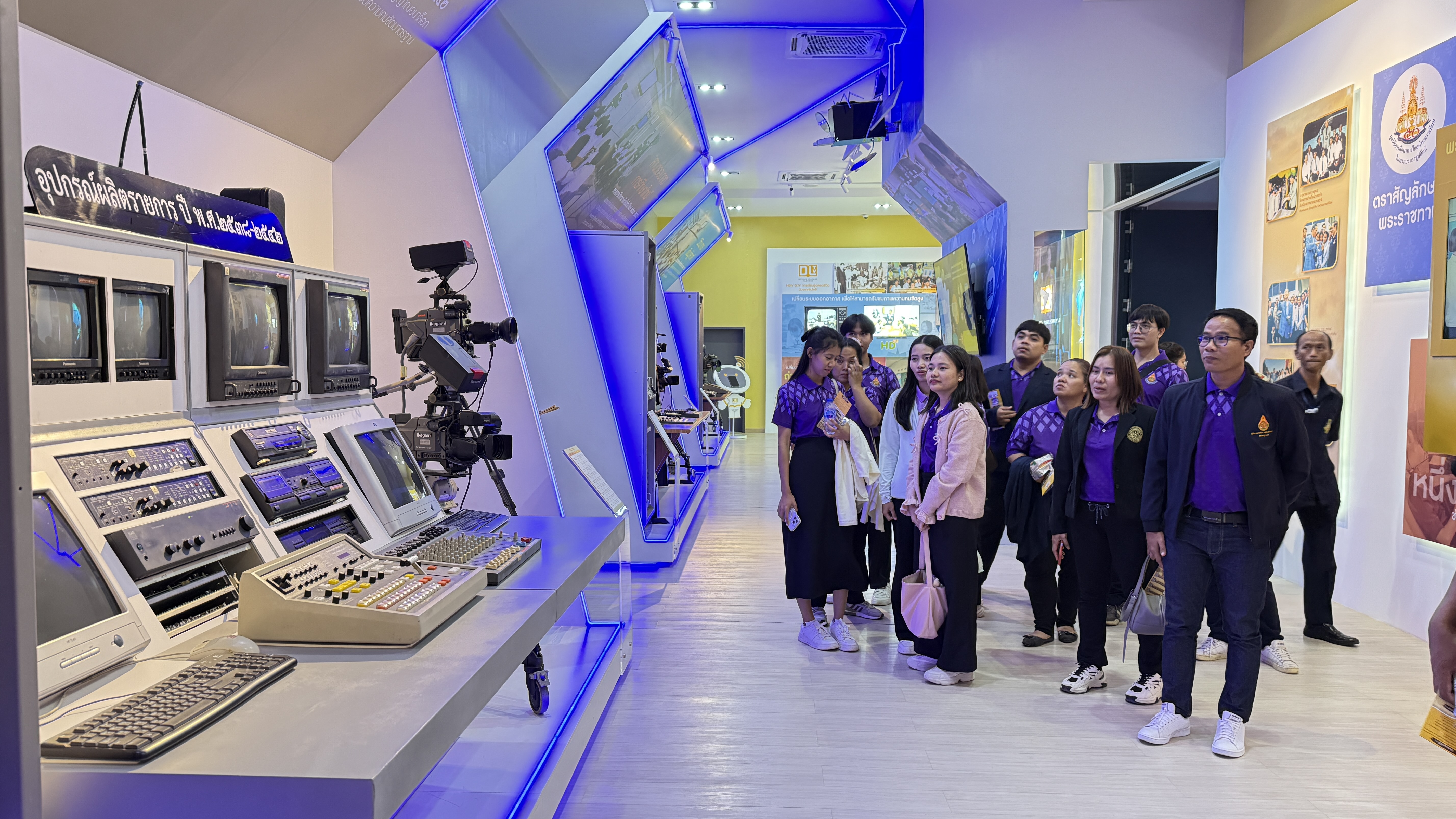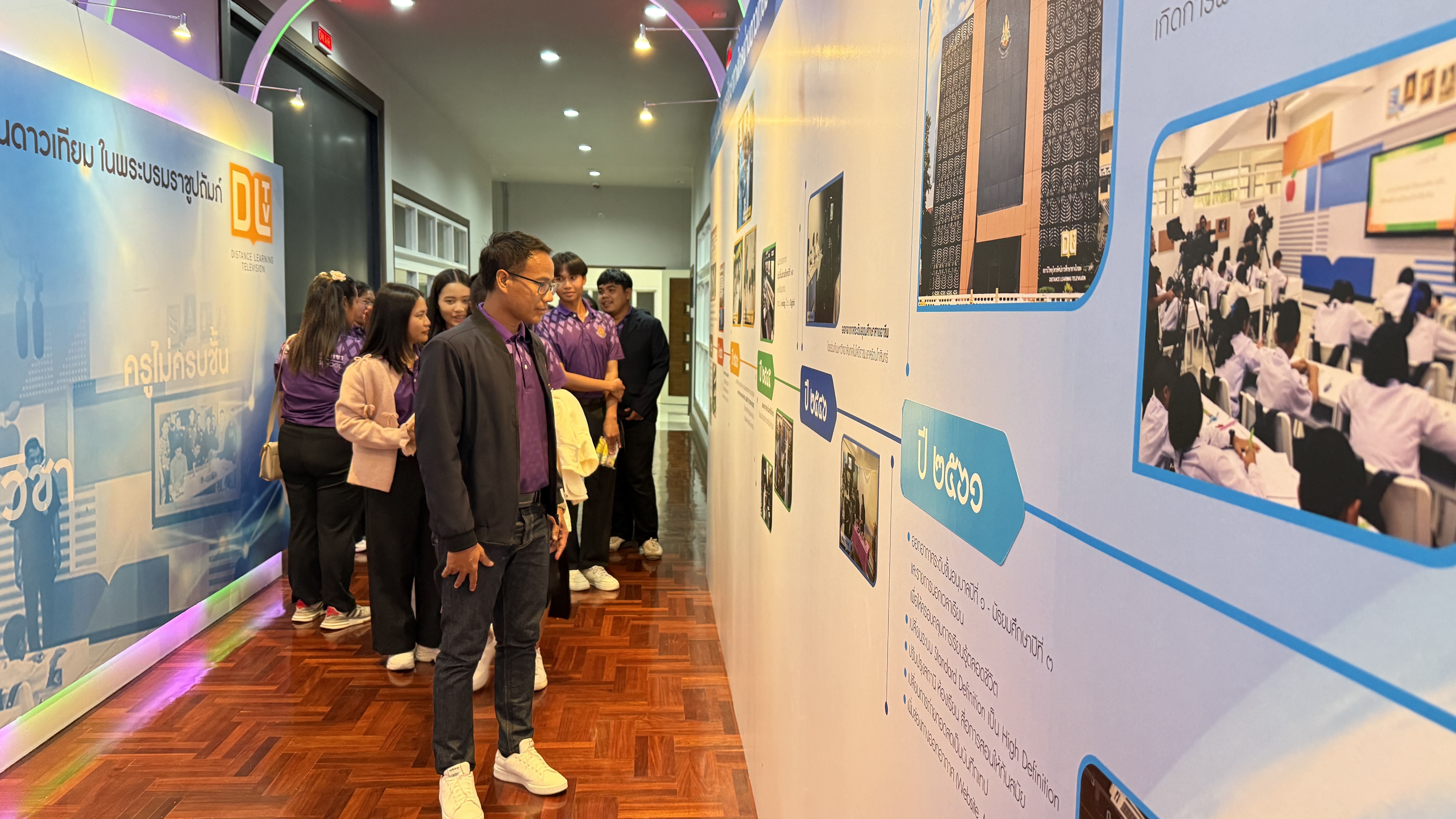 การนี้ นายณัฐพงษ์ สวัสดี หัวหน้าฝ่ายสารสนเทศและสื่อสารองค์กร พร้อมด้วย นายสมมาตย์ พันธุ์เฮง หัวหน้าฝ่ายรายการ นำคณะเยี่ยมชมการดำเนินงานของสถานีฯ ด้านการผลิตรายการ การจัดทำสื่อการสอน การนำรายการเข้าสู่ระบบ การตัดต่อรายการ การจัดผังรายการ และการส่งสัญญาณออกอากาศผ่านดาวเทียม จากนั้นเยี่ยมชมห้องบันทึกรายการฉากจริง ฉากเสมือนจริง และเยี่ยมชมนิทรรศการประวัติความเป็นมา DLTV