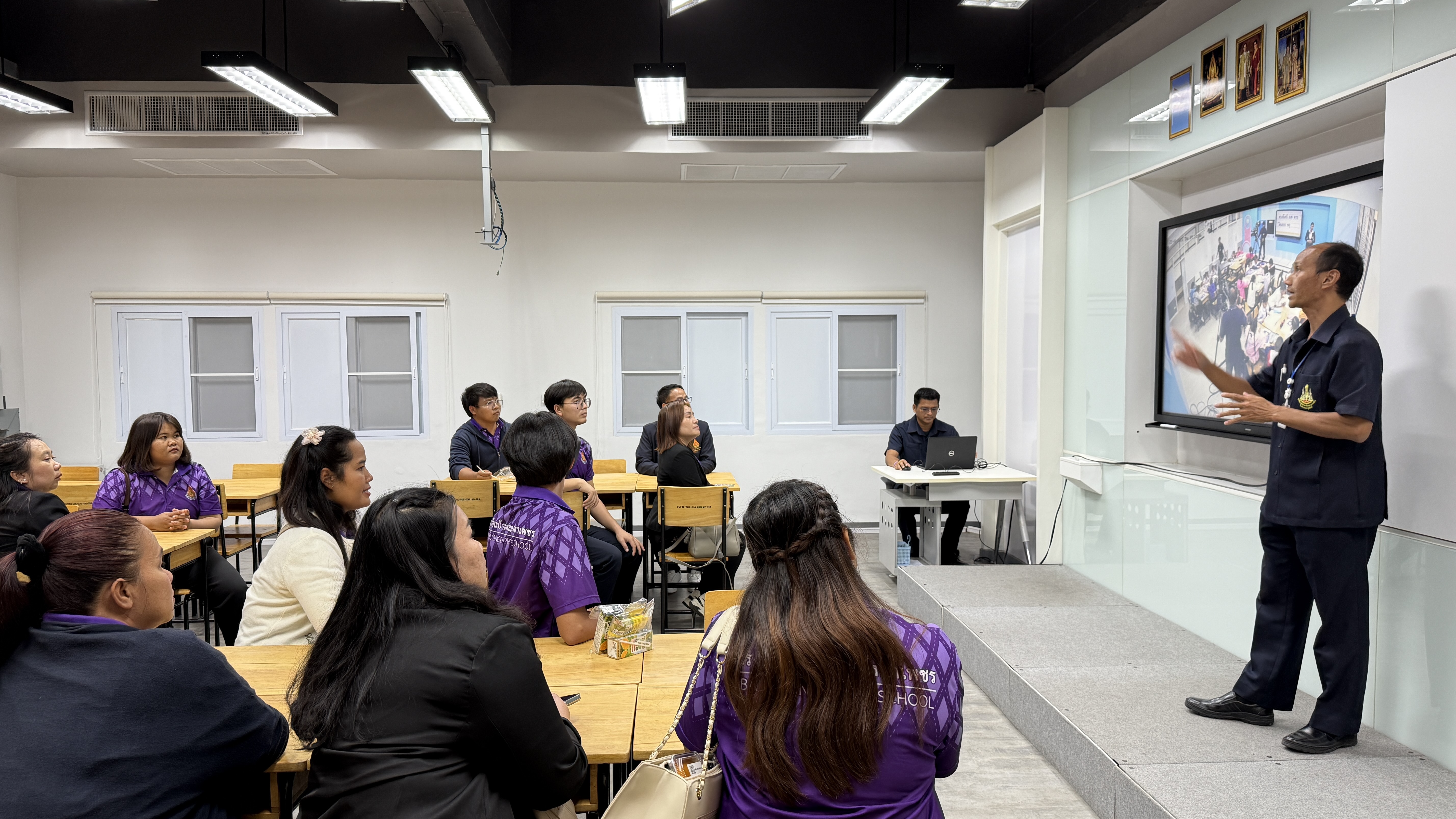 วันพฤหัสบดีที่ 20 มกราคม 2568 เวลา 12.30 น. ณ ห้องประชุม 1 นางยุวนิตย์ ศรศิลป์ ผู้อำนวยการสถานีวิทยุโทรทัศน์การศึกษาทางไกลผ่านดาวเทียม ให้การต้อนรับพร้อมบรรยายสรุปการดำเนินงานของสถานีฯ ภายใต้การบริหารงานของมูลนิธิการศึกษาทางไกลผ่านดาวเทียม ใบพระบรมราชูปถัมภ์ แก่ นายสราวุฒิ พลหาญ ผู้อำนวยการโรงเรียนบ้านคลองตาเพชร จังหวัดชลบุรี ในโอกาสนำคณะครูและบุคลากรทางการศึกษา จำนวน 17 คน เดินทางเข้าศึกษาดูงานที่สถานีฯ เพื่อส่งเสริมให้คณะครูได้รับความรู้และประสบการณ์ตรงจากการเยี่ยมชมห้องเรียนต้นทาง ซึ่งจัดการเรียนการสอนทางไกลผ่านดาวเทียม และนำความรู้ประสบการณ์ที่ได้รับไปประยุกต์ปรับใช้กับการจัดการเรียนการสอนของโรงเรียนให้มีประสิทธิภาพต่อไป