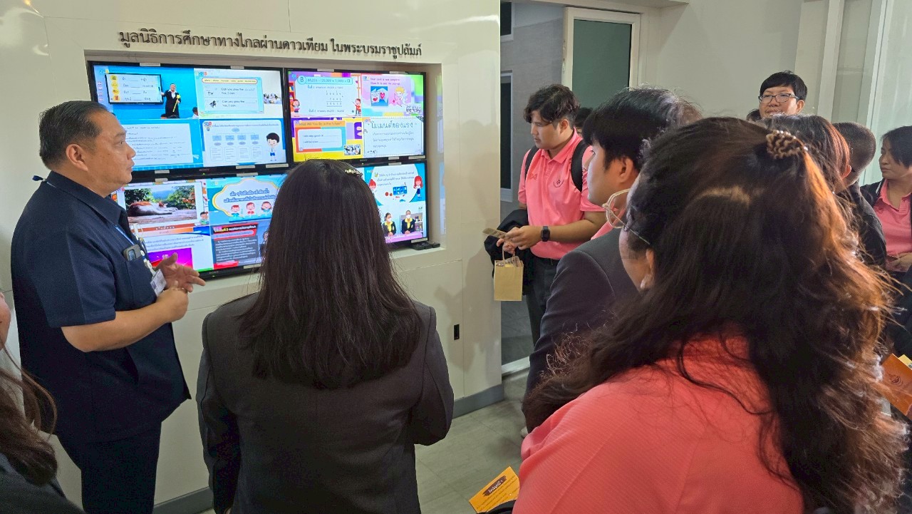 วันพฤหัสบดีที่ 8 พฤษภาคม 2568 เวลา 10.30 น.ณ ห้องประชุม 1 อาคารสถานีวิทยุโทรทัศน์การศึกษาทางไกลผ่านดาวเทียม นายเกรียงไกร แสงทอง ผู้ช่วยผู้อำนวยการสถานีวิทยุโทรทัศน์การศึกษาทางไกลผ่านดาวเทียม ให้การต้อนรับ รองศาสตราจารย์ ดร.สุมาลี เทียนทองดี ผู้อำนวยการโรงเรียนสาธิตมหาวิทยาลัยราชภัฏสวนสุนันทา ในโอกาสนำคณะครูและบุคลากรทางการศึกษาในสังกัด จำนวน 45 คน เดินทางเข้าศึกษาดูงาน การจัดการเรียนการสอนทางไกลผ่านดาวเทียม ณ สถานีวิทยุโทรทัศน์การศึกษาทางไกลผ่านดาวเทียม เพื่อแลกเปลี่ยนเรียนรู้ประสบการณ์ด้านการจัดการเรียนการสอน และเสริมสร้างความรู้ด้านการใช้ระบบเทคโนโลยีสารสนเทศกับการเรียนการสอน และนำความรู้ที่ได้ไปพัฒนาโรงเรียนให้เป็นองค์กรแห่งการเรียนรู้ด้วยระบบสารสนเทศ