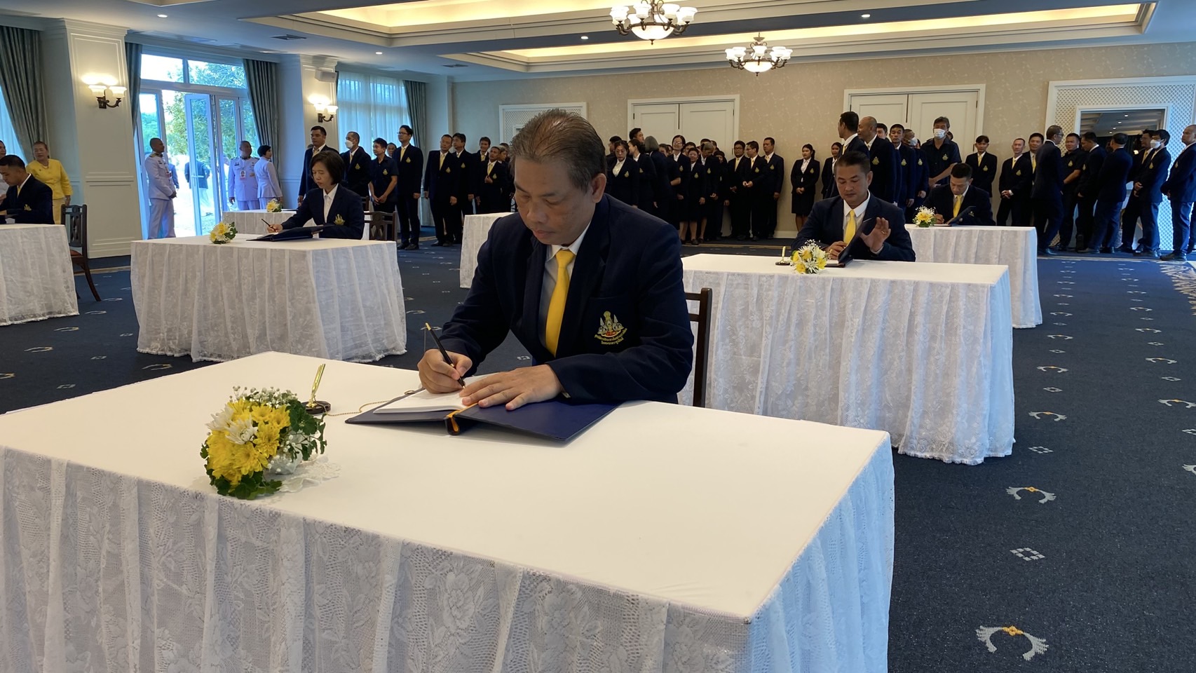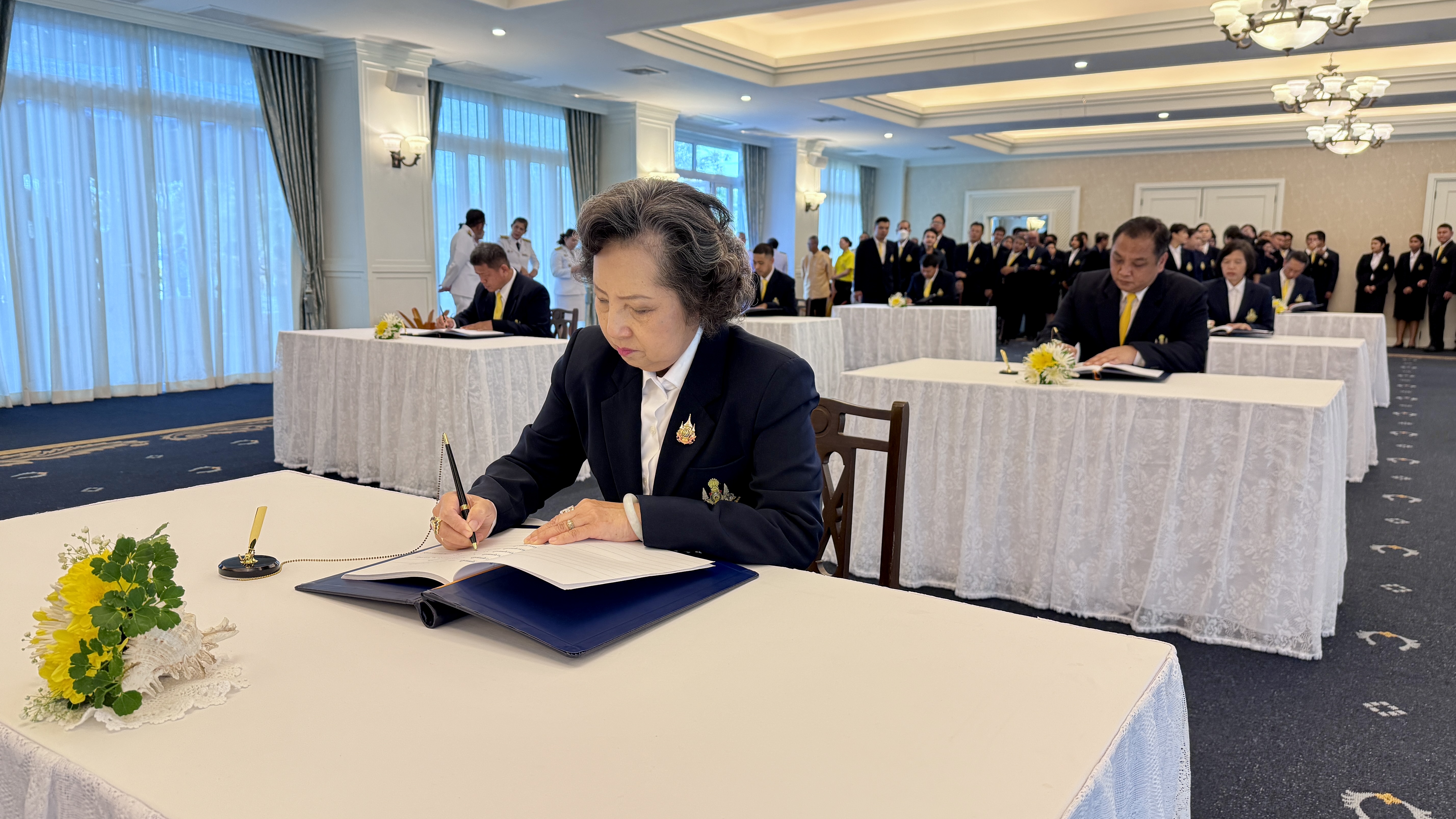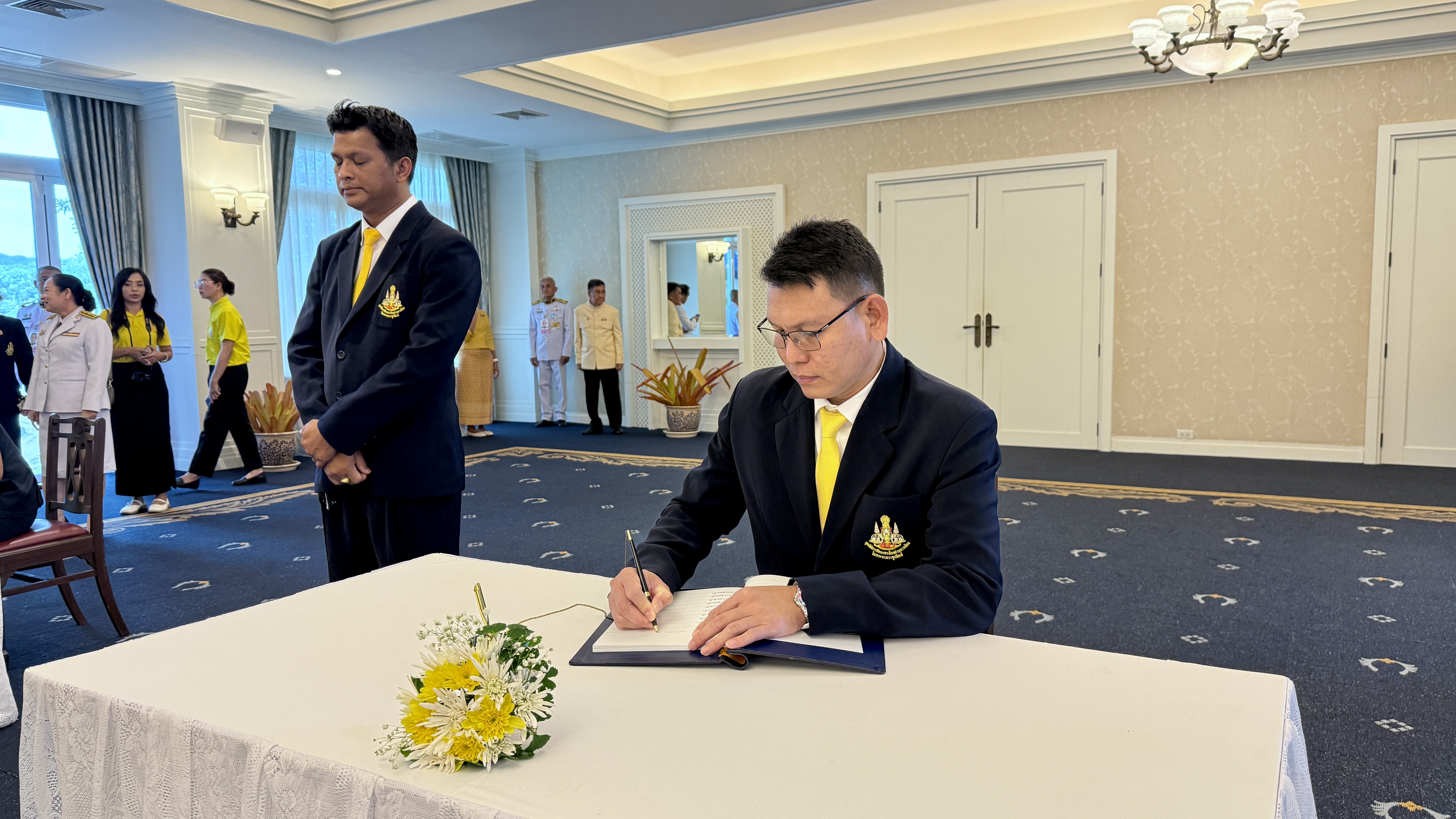 วันจันทร์ที่ ๒๘ กรกฎาคม ๒๕๖๘ เวลา ๐๙.๓๙ น. นางยุวนิตย์ ศรศิลป์ ผู้อำนวยการสถานีวิทยุโทรทัศน์การศึกษาทางไกลผ่านดาวเทียม นำคณะเจ้าหน้าที่สถานีวิทยุโทรทัศน์การศึกษาทางไกลผ่านดาวเทียม จำนวน ๙๗ คน ทูลเกล้าฯ ถวายแจกันดอกไม้สดหน้าพระบรมฉายาลักษณ์ พระบาทสมเด็จพระเจ้าอยู่หัว และร่วมลงนามถวายพระพรชัยมงคล เนื่องในโอกาสวันเฉลิมพระชนมพรรษา ๒๘ กรกฎาคม ๒๕๖๘ ณ ศาลาราชประชาสมาคม วังไกลกังวล อำเภอหัวหิน จังหวัดประจวบคีรีขันธ์ เพื่อแสดงออกถึงความจงรักภักดีและสำนึกในพระมหากรุณาธิคุณ