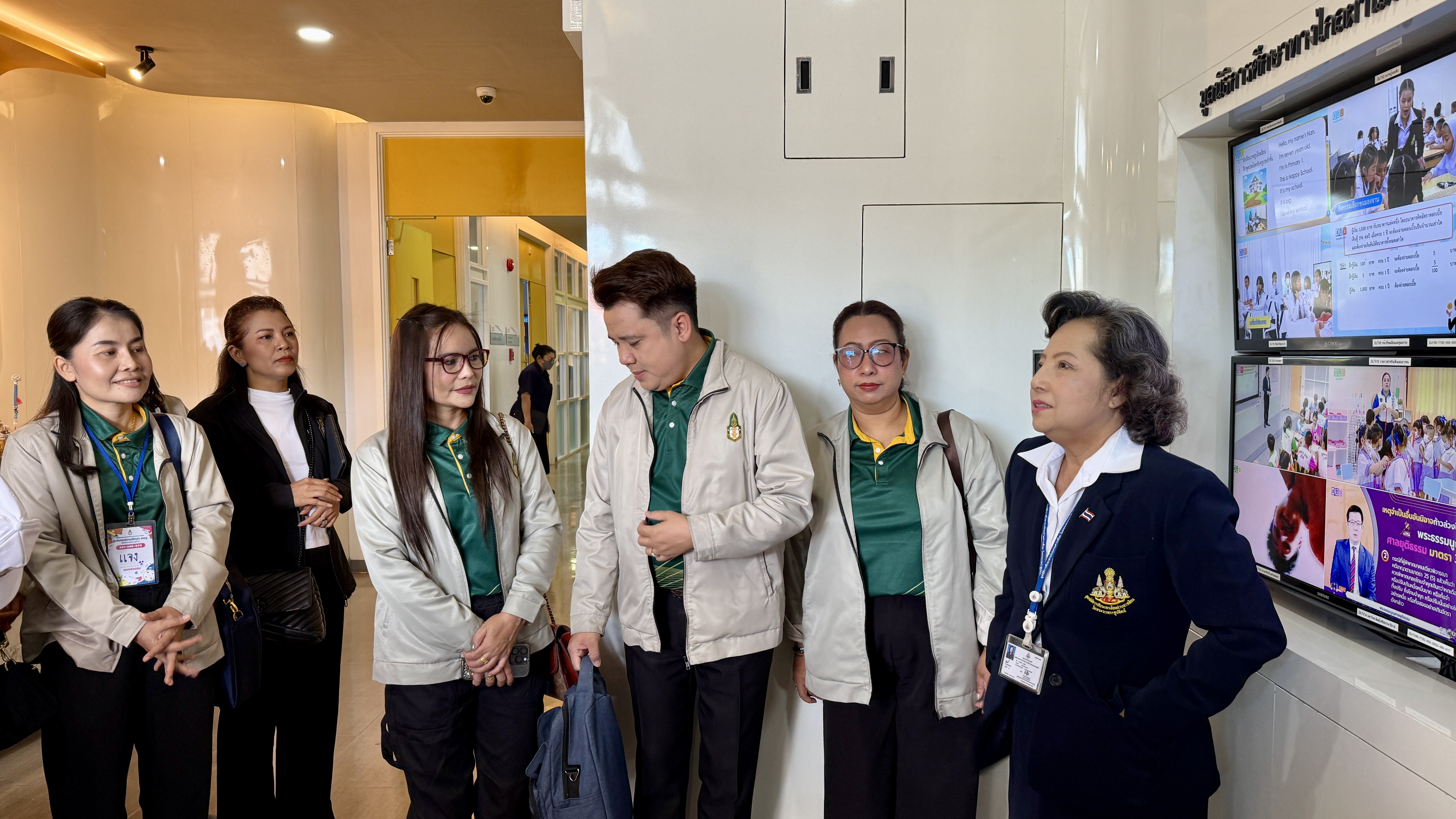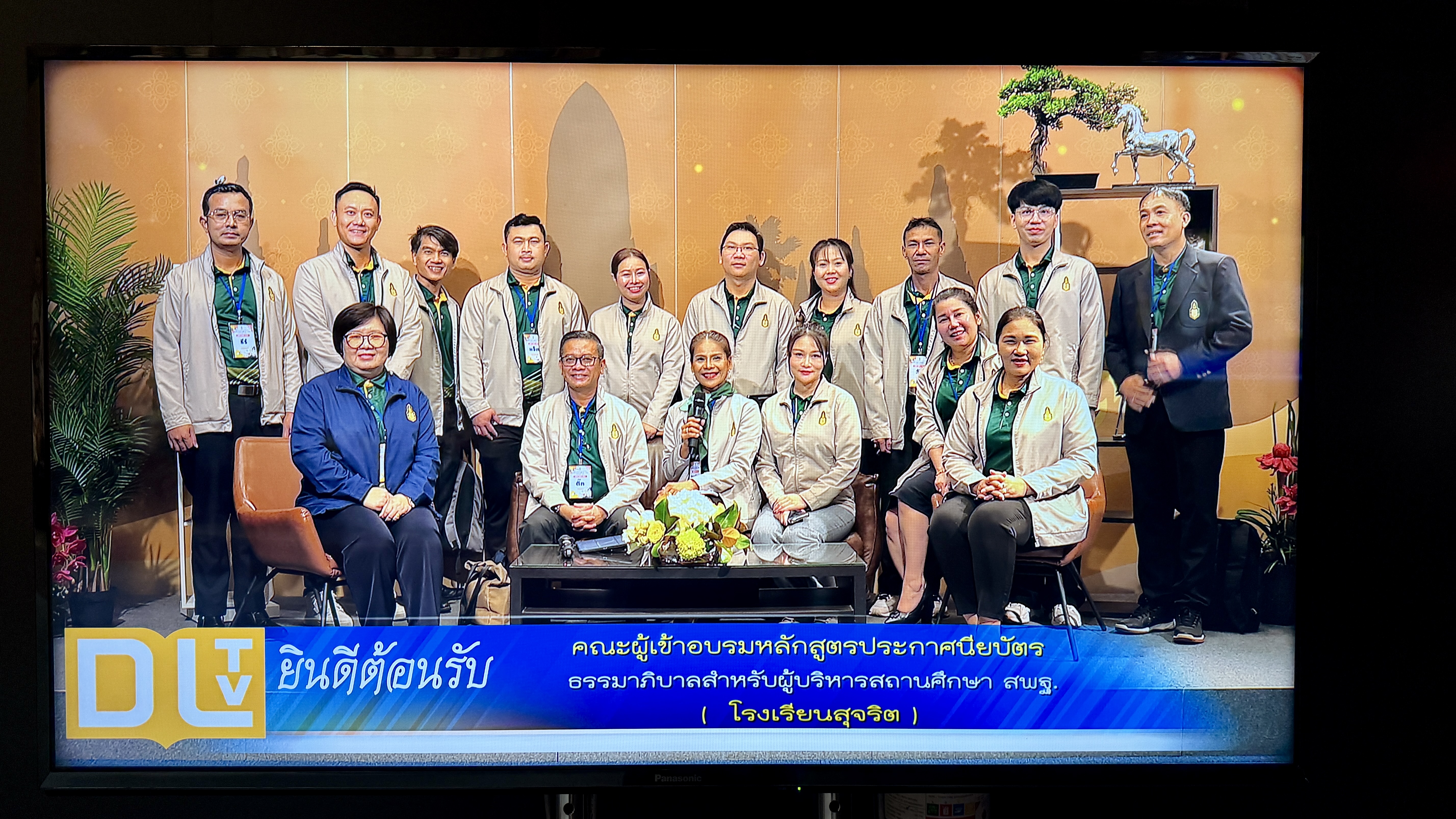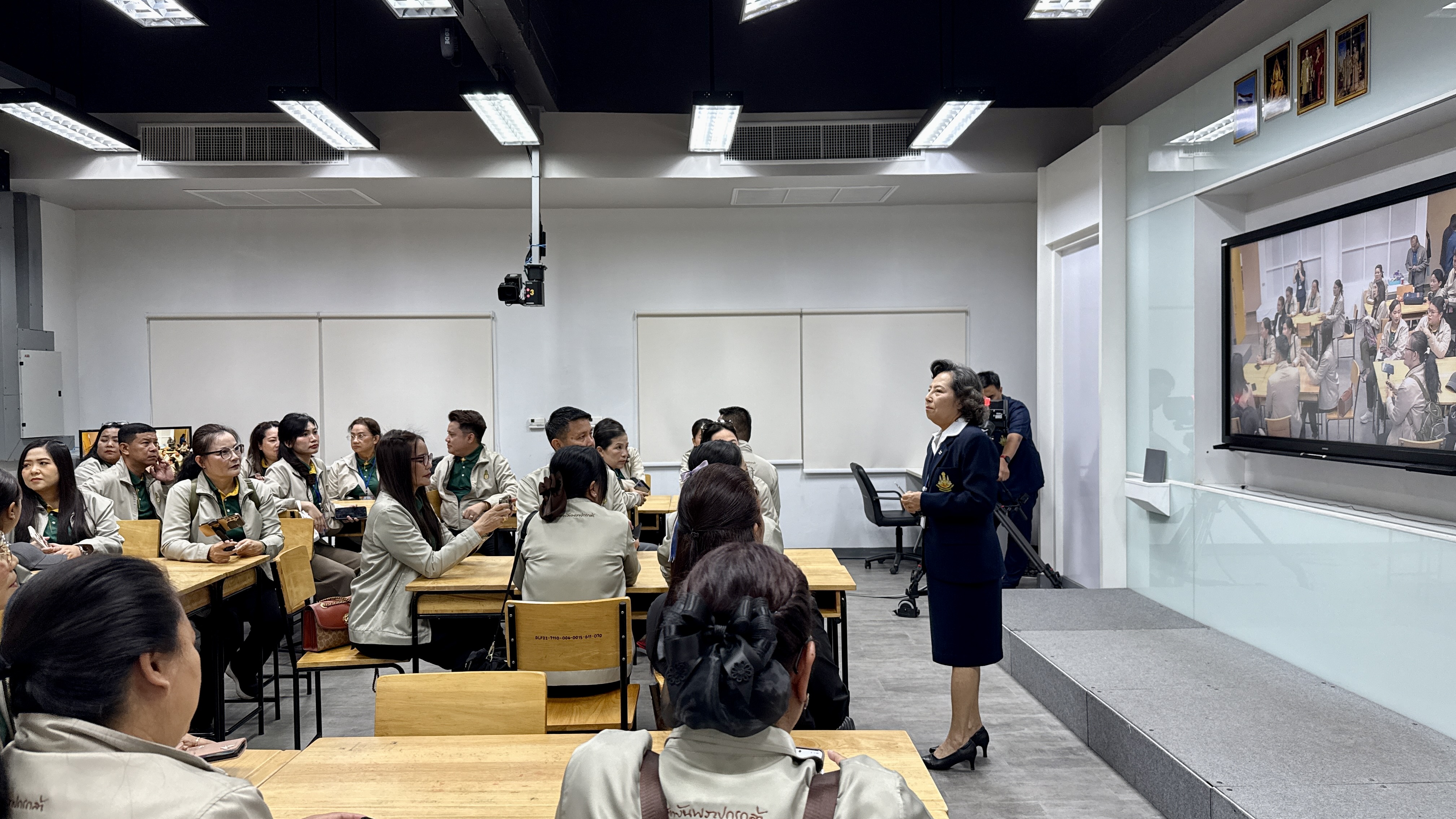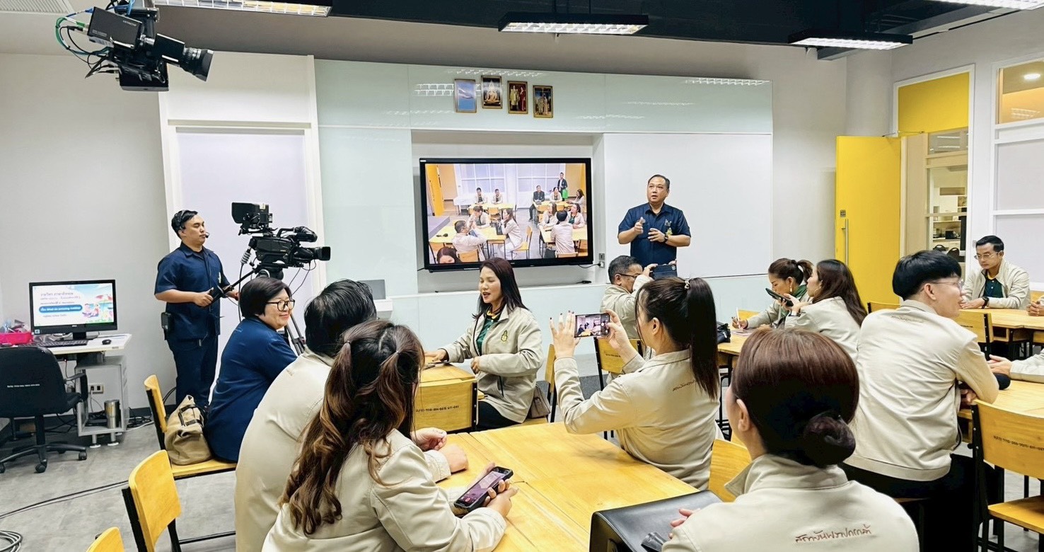 วันพุธที่ 8 ตุลาคม 2568 เวลา 09.00 น. นางยุวนิตย์ ศรศิลป์ ผู้อำนวยการสถานีวิทยุโทรทัศน์การศึกษาทางไกลผ่านดาวเทียม ให้การต้อนรับ นายณัฐพงษ์ รอดมี ผู้ช่วยเลขาธิการสถาบันพระปกเกล้า ปฏิบัติการแทน เลขาธิการสถาบันพระปกเกล้า ในโอกาสนำคณะผู้ศึกษาหลักสูตรประกาศนียบัตรธรรมาภิบาลสำหรับผู้บริหารสถานศึกษา สพฐ. (โรงเรียนสุจริต) รุ่นที่ 11 จำนวน 80 คน ประกอบด้วย ผู้อำนวยการสำนักงานเขตพื้นที่การศึกษา ,รองผู้อำนวยการสำนักงานเขดพื้นที่การศึกษา และผู้อำนวยการสถานศึกษา เข้าเยี่ยมชมการดำเนินงานของสถานีฯ ภายใต้การบริหารงานของมูลนิธิการศึกษาทางไกลผ่านดาวเทียม ในพระบรมราชูปถัมภ์ ตลอดจนภารกิจหลักในการผลิตและเผยแพร่รายการการศึกษาทางไกล เพื่อนำความรู้ที่ได้รับไปประยุกต์ใช้ในการดำเนินโครงการโรงเรียนสุจริตต่อไป