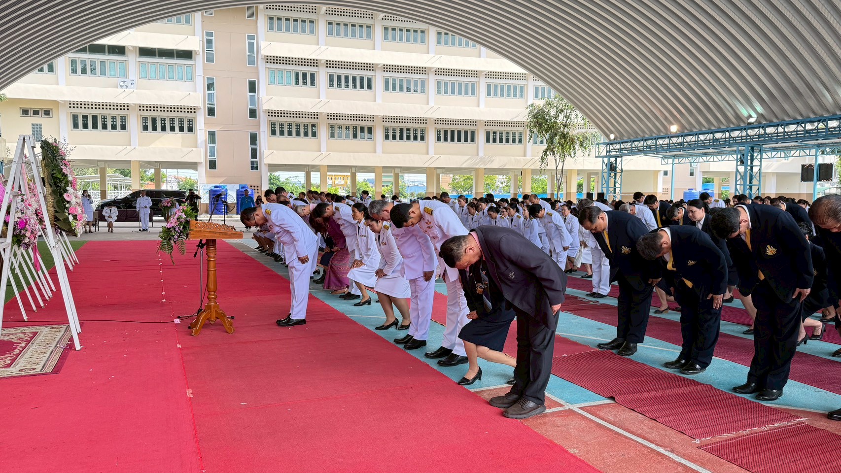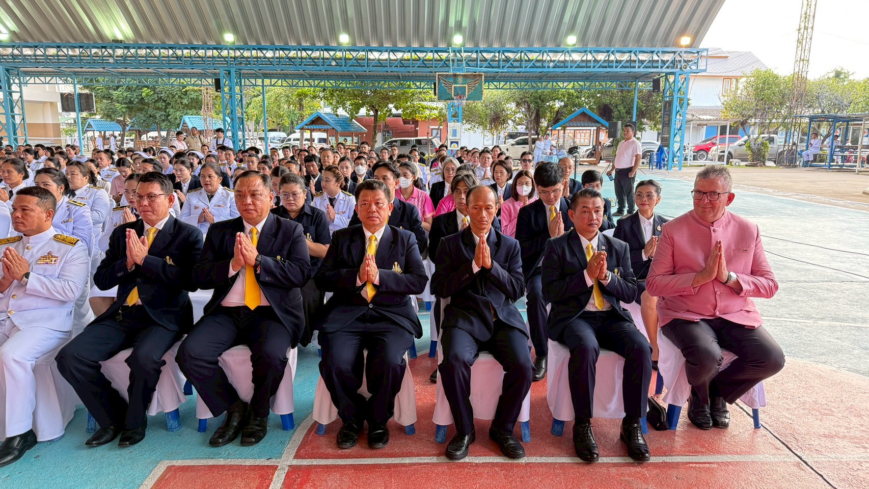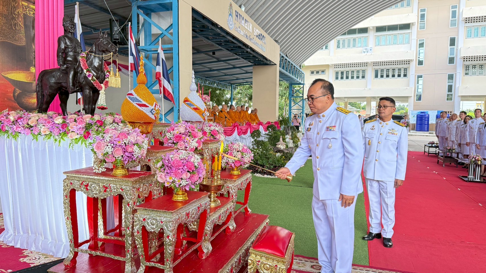 การนี้ นางยุวนิตย์ ศรศิลป์ ผู้อำนวยการสถานีฯ นำคณะผู้บริหาร และเจ้าหน้าที่สถานีวิทยุโทรทัศน์การศึกษาทางไกลผ่านดาวเทียมเข้าร่วมพิธีอย่างพร้อมเพรียงกัน ณ อาคารอเนกประสงค์/โดม โรงเรียนหัวหิน (ประจำอำเภอ) อำเภอหัวหิน จังหวัดประจวบคีรีขันธ์