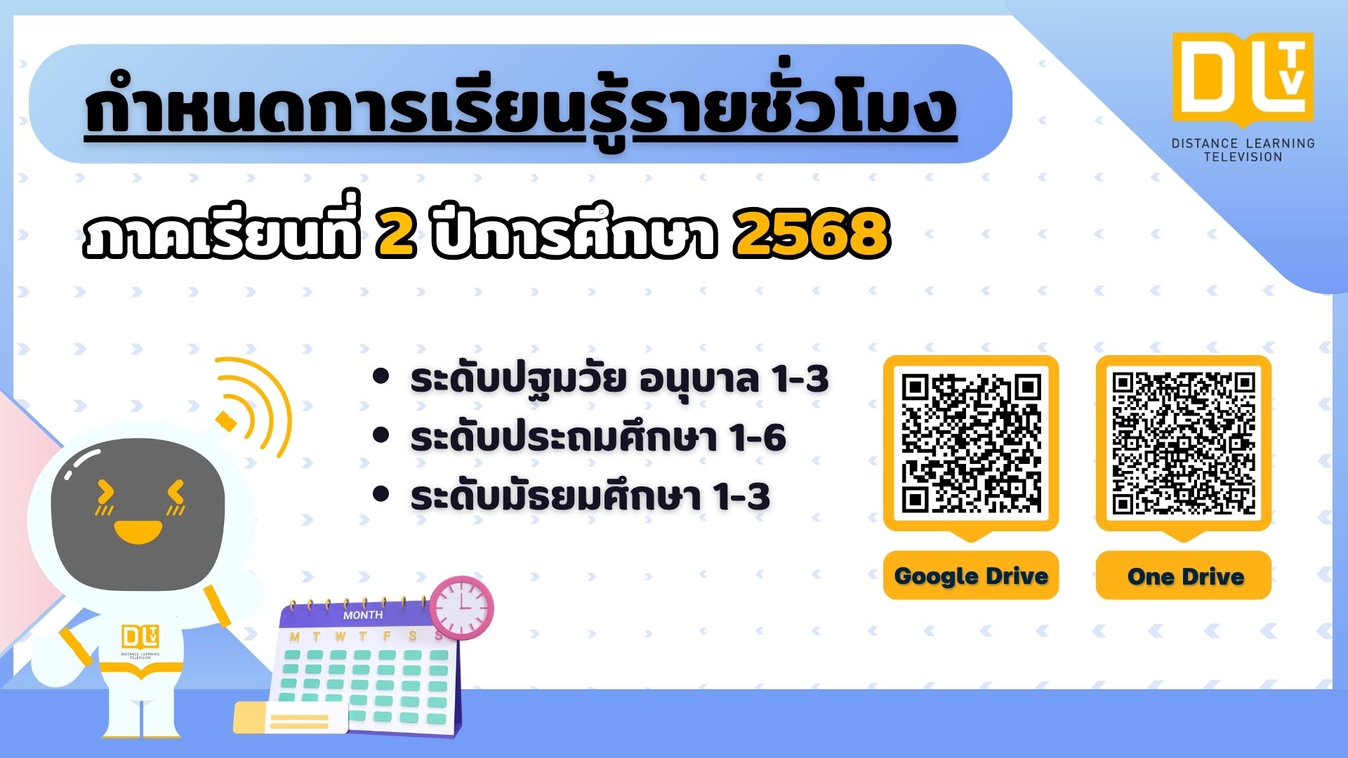 กำหนดการเรียนรู้รายชั่วโมง ภาคเรียนที่ 2 ปีการศึกษา 2568 One Drive