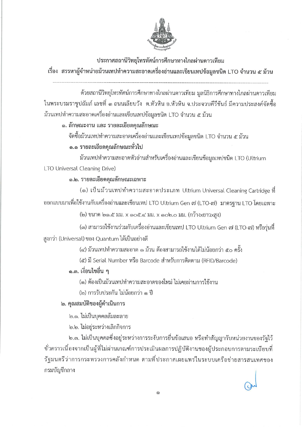 เรื่อง สรรหาผู้จำหน่ายม้วนเทปทำความสะอาดเครื่องอ่านและเขียนเทปข้อมูลชนิด LTO จำนวน 5 ม้วน