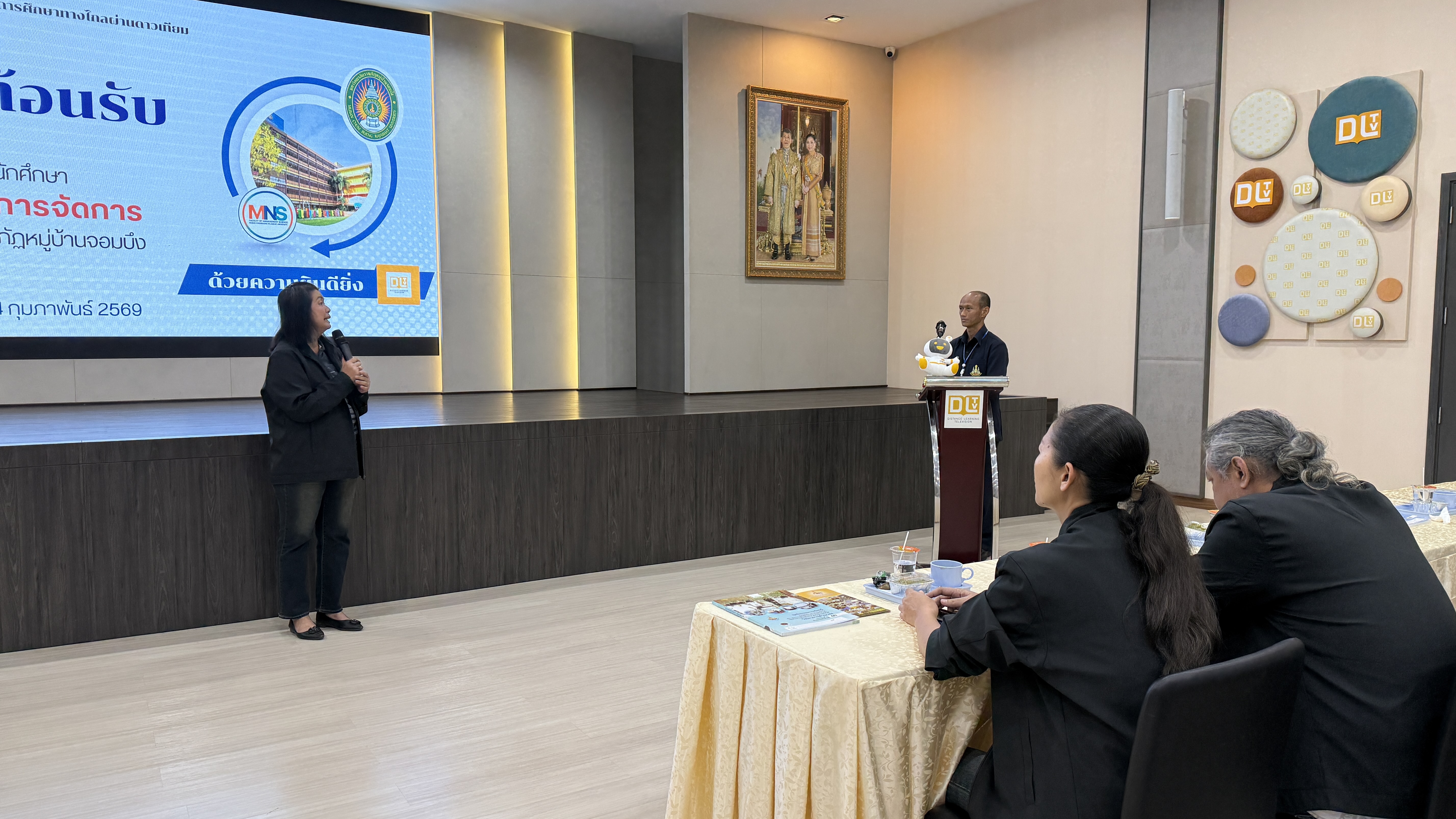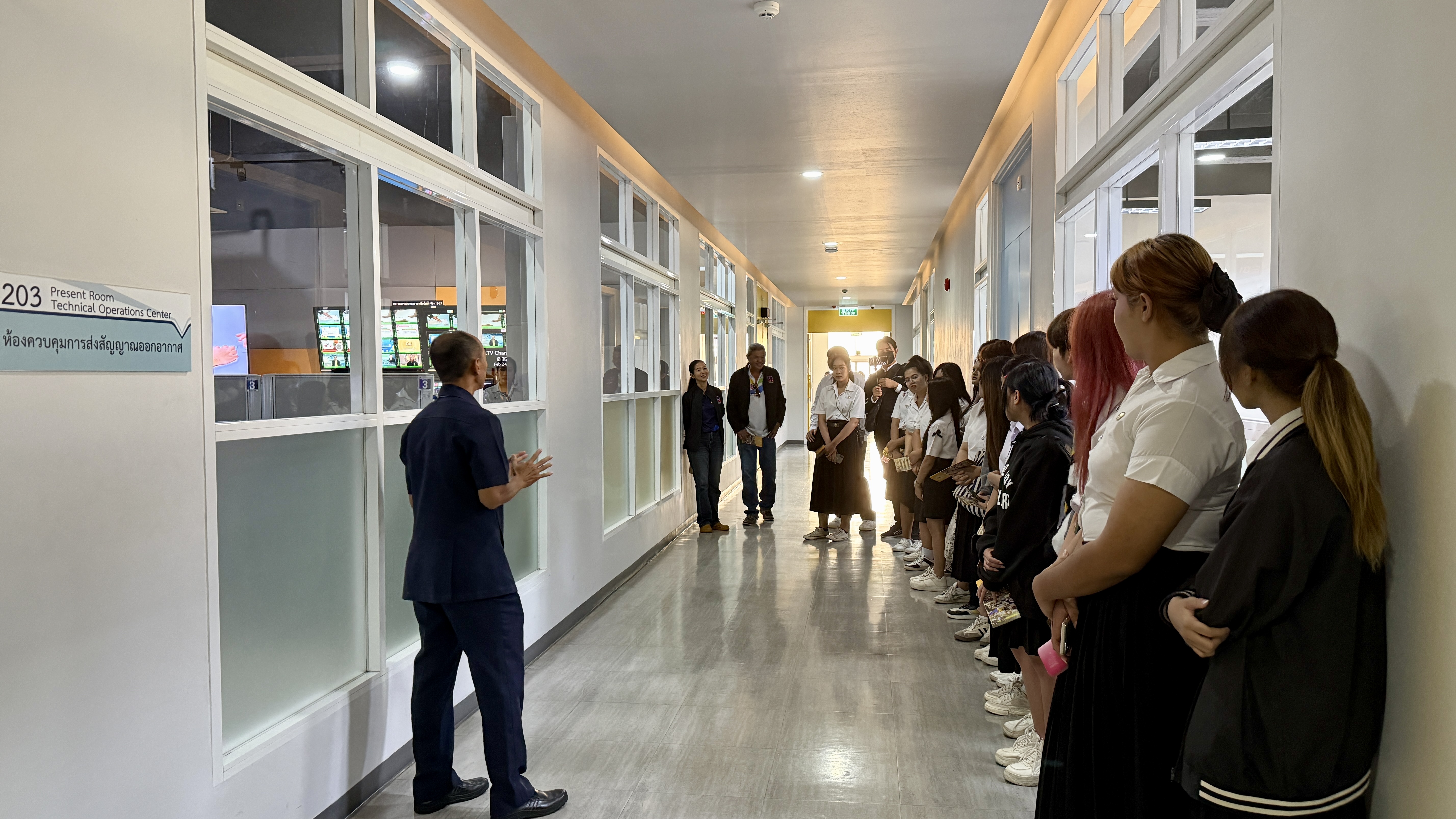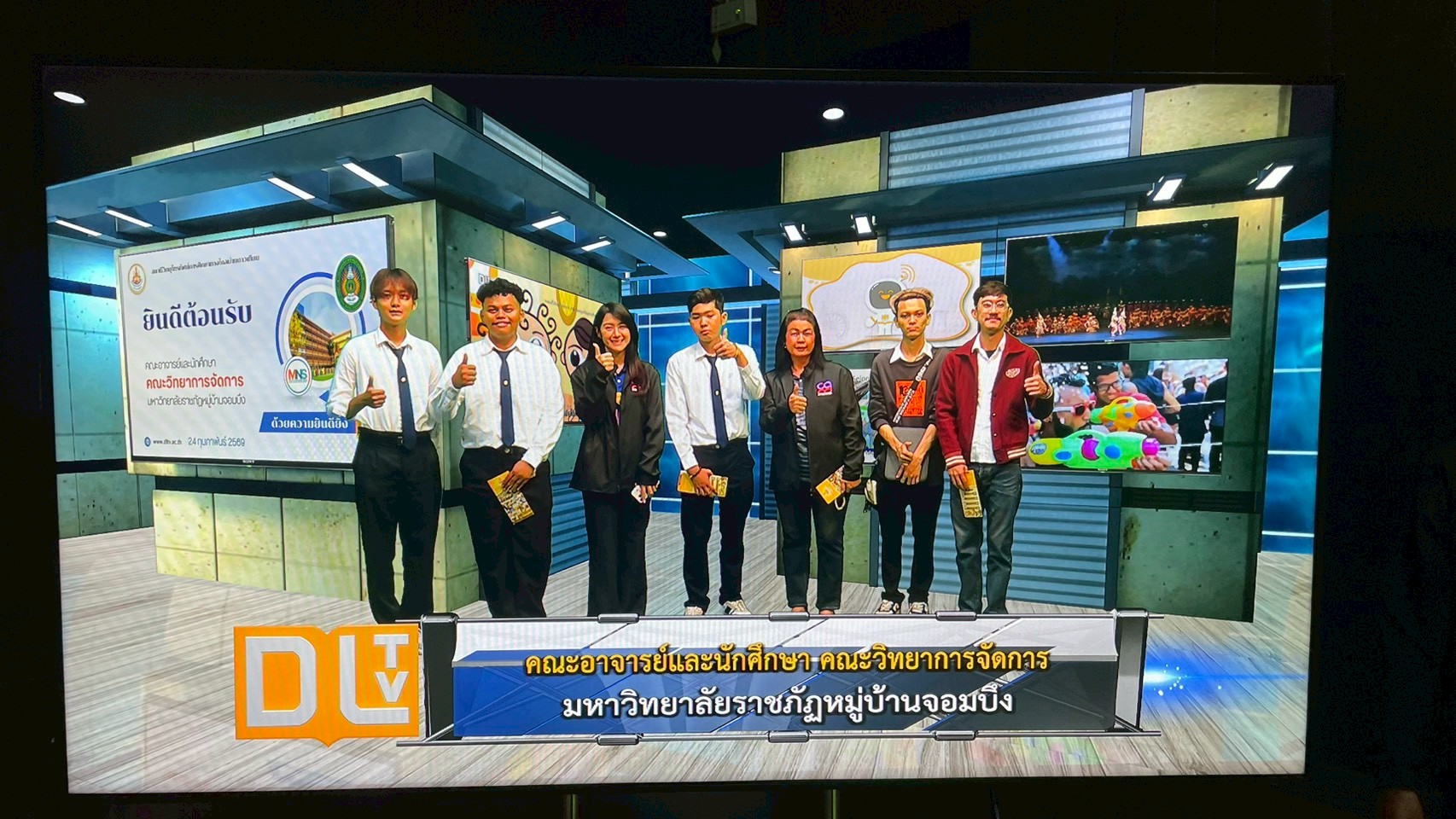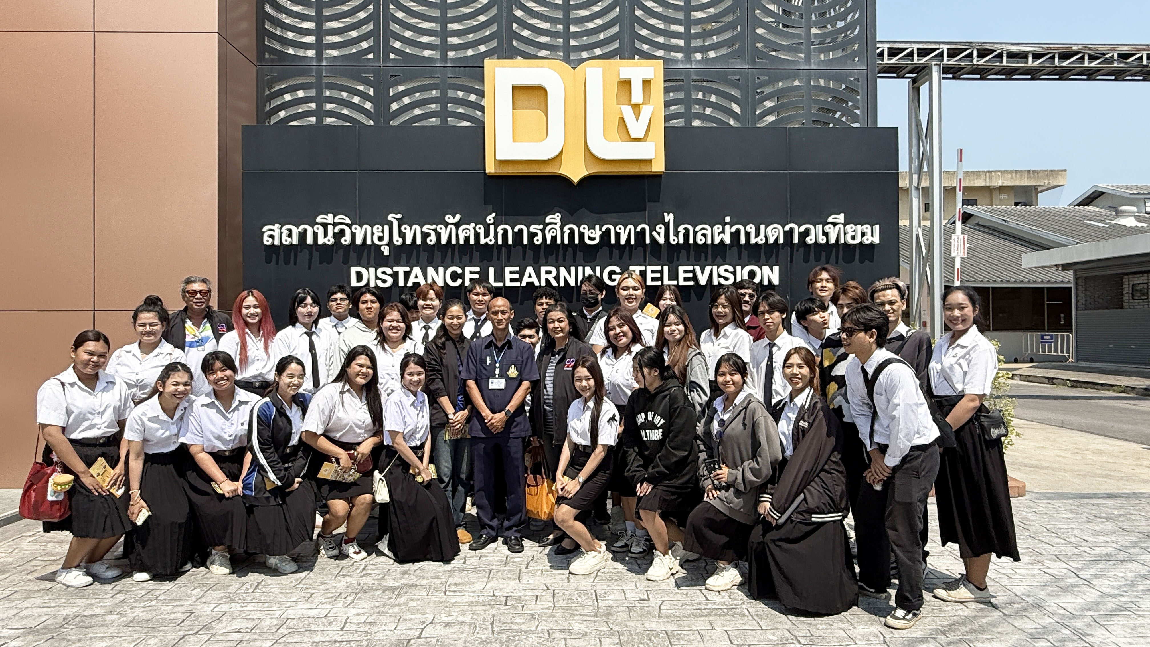 วันอังคารที่ 24 กุมภาพันธ์ 2569 เวลา 10.00 น. นายณัฐพงษ์ สวัสดี หัวหน้าฝ่ายสารสนเทศและสื่อสารองค์กร พร้อมด้วย นายก้องเกียรติ ส่องแสงจันทร์ หัวหน้าฝ่ายผลิตรายการ และนายอมรเทพ สุกสี หัวหน้าฝ่ายออกอากาศ ให้การต้อนรับคณะอาจารย์และนักศึกษา สาขาวิชานิเทศศาสตร์และนวัตกรรมสื่อ คณะวิทยาการจัดการ มหาวิทยาลัยราชภัฏหมู่บ้านจอมบึง จำนวน 42 คน ในโอกาสเข้าศึกษาดูงาน ณ สถานีวิทยุโทรทัศน์การศึกษาทางไกลผ่านดาวเทียม โดยคณะได้เยี่ยมชมกระบวนการผลิตรายการการเรียนการสอนทางไกลผ่านดาวเทียม (DLTV) ตั้งแต่ห้องเรียนต้นทาง ระดับชั้นมัธยมศึกษาปีที่ 1–3 ,ห้องควบคุมบันทึกรายการ ,ห้องควบคุมการออกอากาศ ,ห้องตัดต่อรายการ ,ห้องบันทึกรายการฉากจริง ,ห้องบันทึกรายการฉากเสมือนจริง และห้องนิทรรศการ DLTV