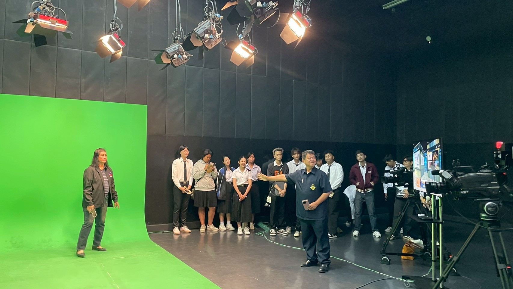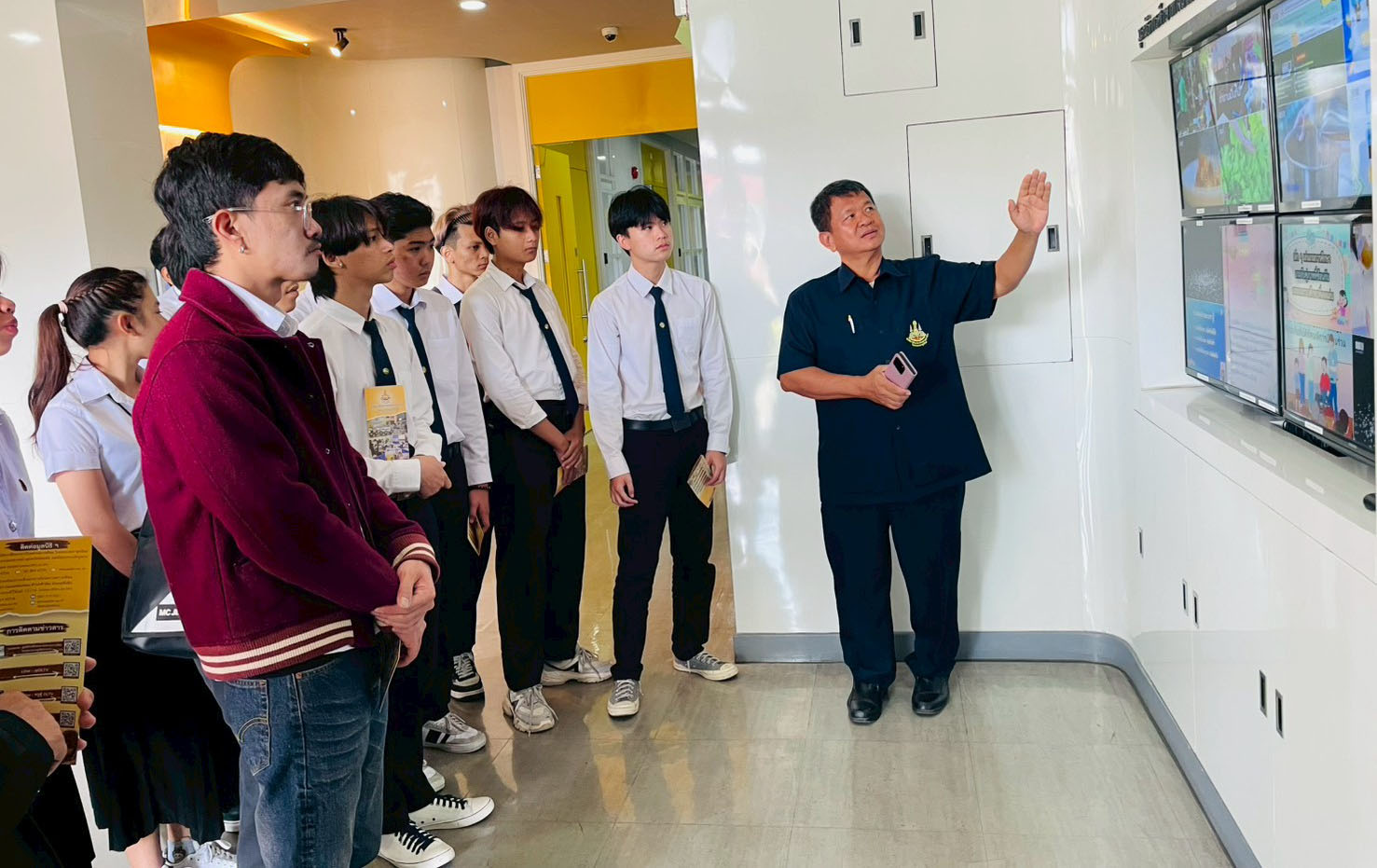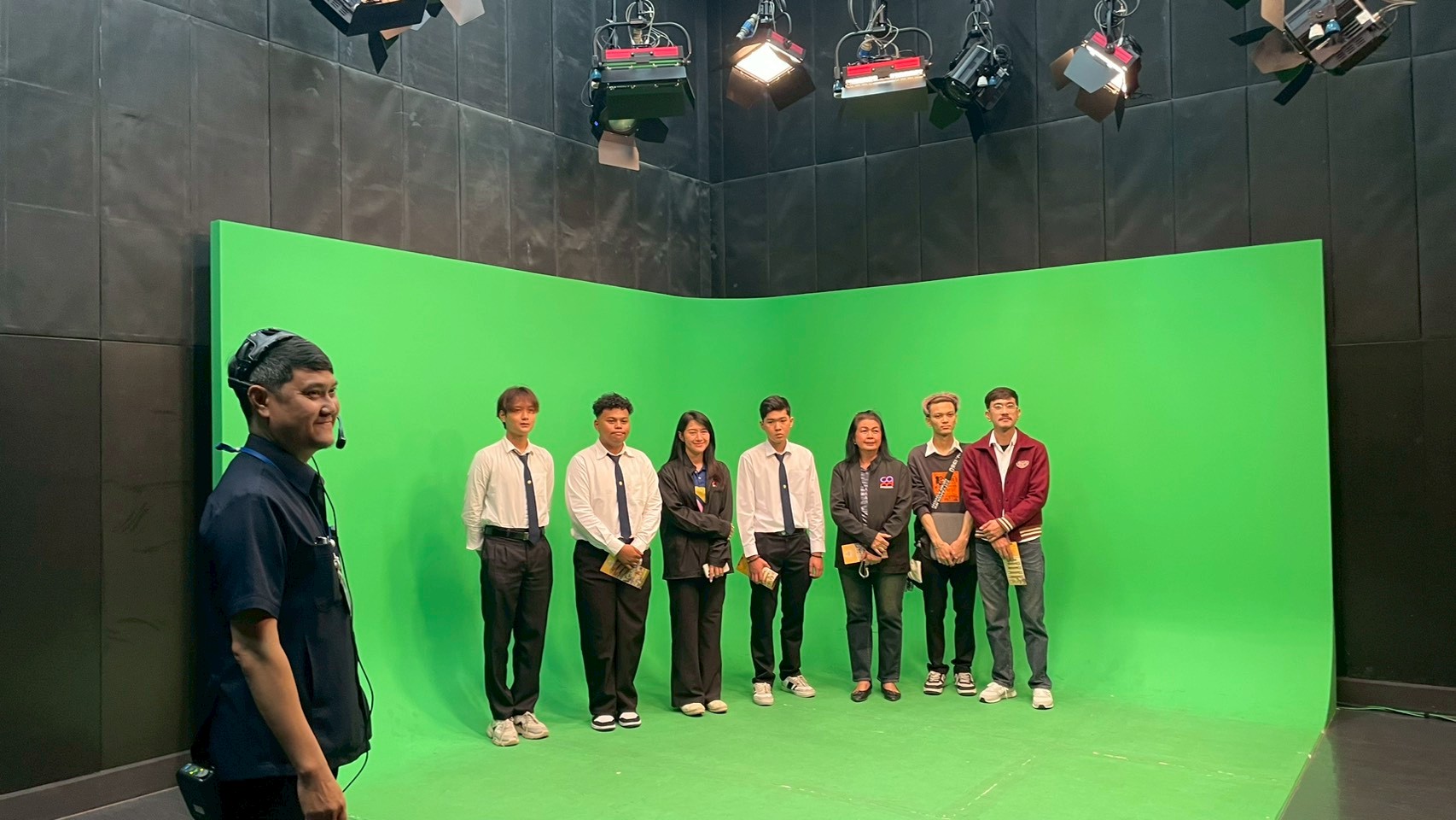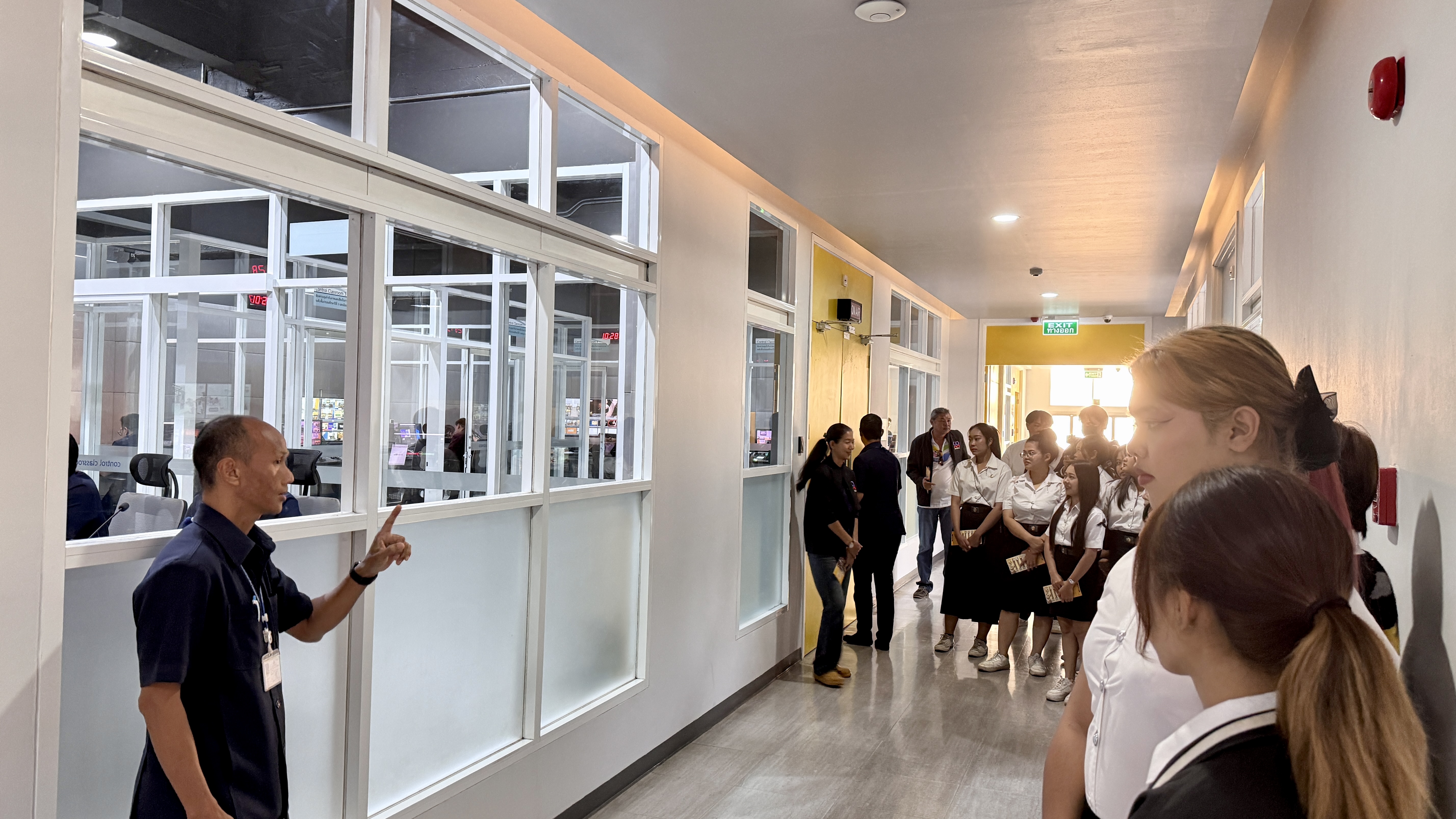วันอังคารที่ 24 กุมภาพันธ์ 2569 เวลา 10.00 น. นายณัฐพงษ์ สวัสดี หัวหน้าฝ่ายสารสนเทศและสื่อสารองค์กร พร้อมด้วย นายก้องเกียรติ ส่องแสงจันทร์ หัวหน้าฝ่ายผลิตรายการ และนายอมรเทพ สุกสี หัวหน้าฝ่ายออกอากาศ ให้การต้อนรับคณะอาจารย์และนักศึกษา สาขาวิชานิเทศศาสตร์และนวัตกรรมสื่อ คณะวิทยาการจัดการ มหาวิทยาลัยราชภัฏหมู่บ้านจอมบึง จำนวน 42 คน ในโอกาสเข้าศึกษาดูงาน ณ สถานีวิทยุโทรทัศน์การศึกษาทางไกลผ่านดาวเทียม โดยคณะได้เยี่ยมชมกระบวนการผลิตรายการการเรียนการสอนทางไกลผ่านดาวเทียม (DLTV) ตั้งแต่ห้องเรียนต้นทาง ระดับชั้นมัธยมศึกษาปีที่ 1–3 ,ห้องควบคุมบันทึกรายการ ,ห้องควบคุมการออกอากาศ ,ห้องตัดต่อรายการ ,ห้องบันทึกรายการฉากจริง ,ห้องบันทึกรายการฉากเสมือนจริง และห้องนิทรรศการ DLTV