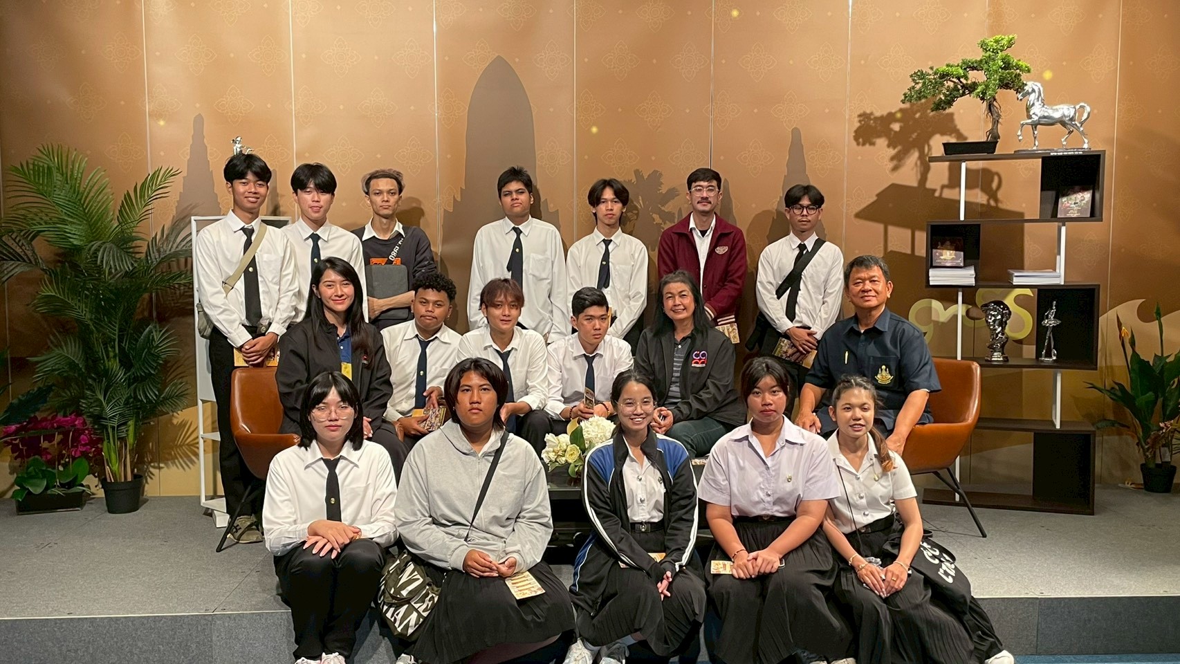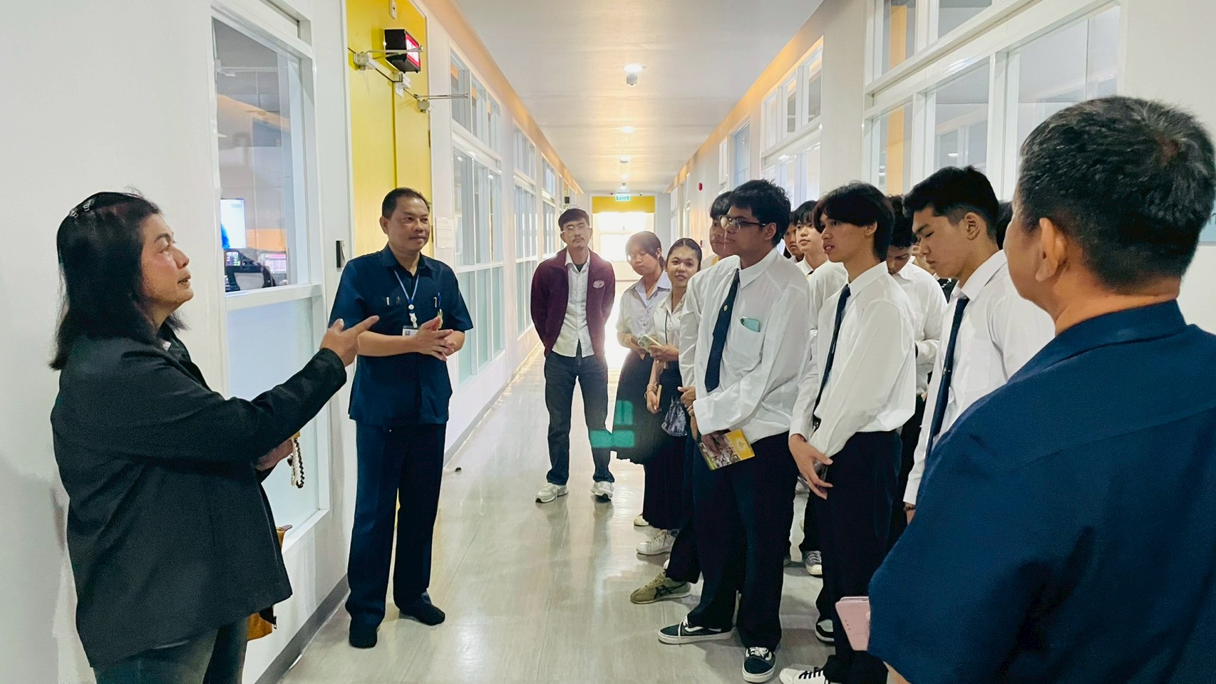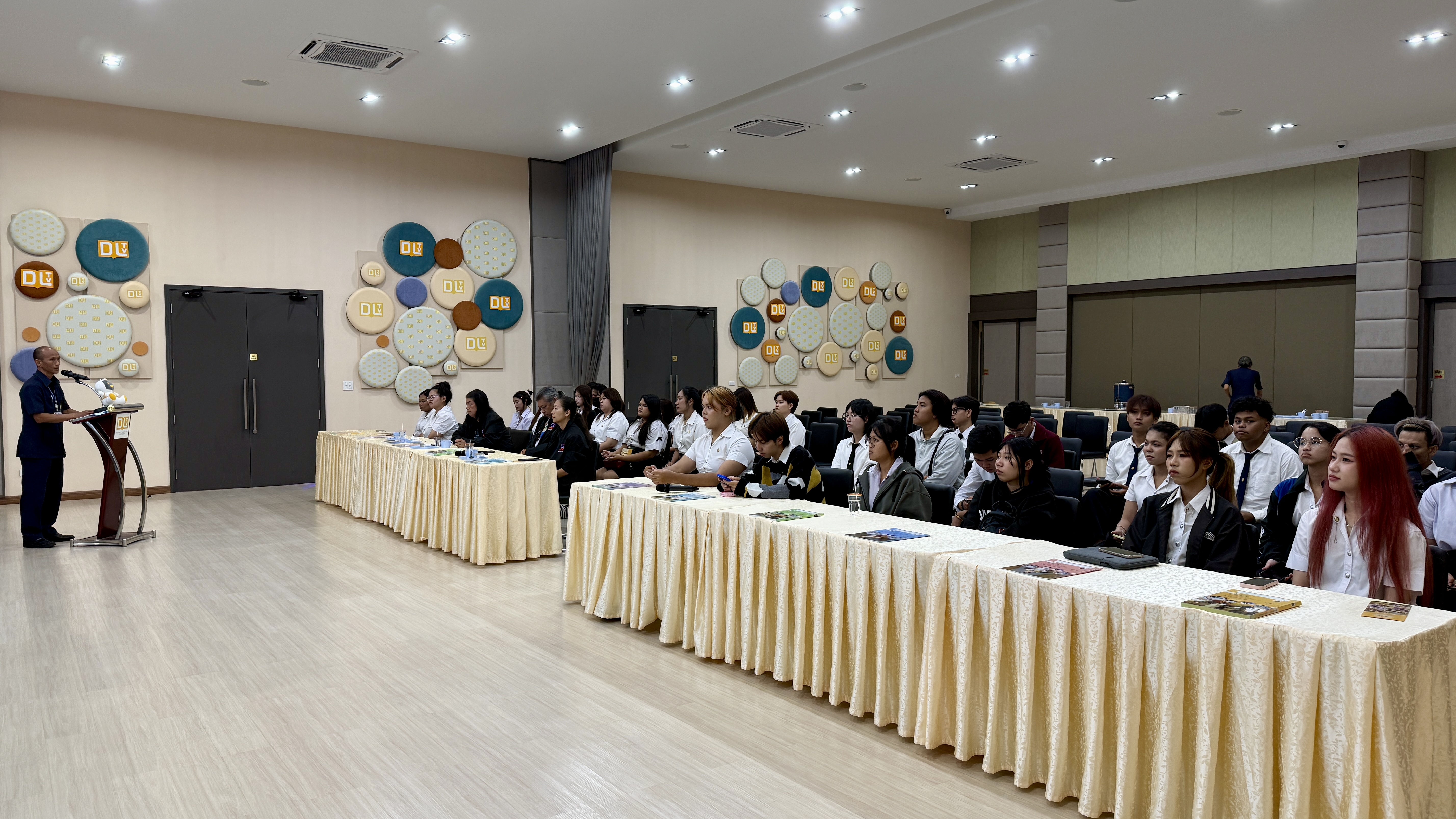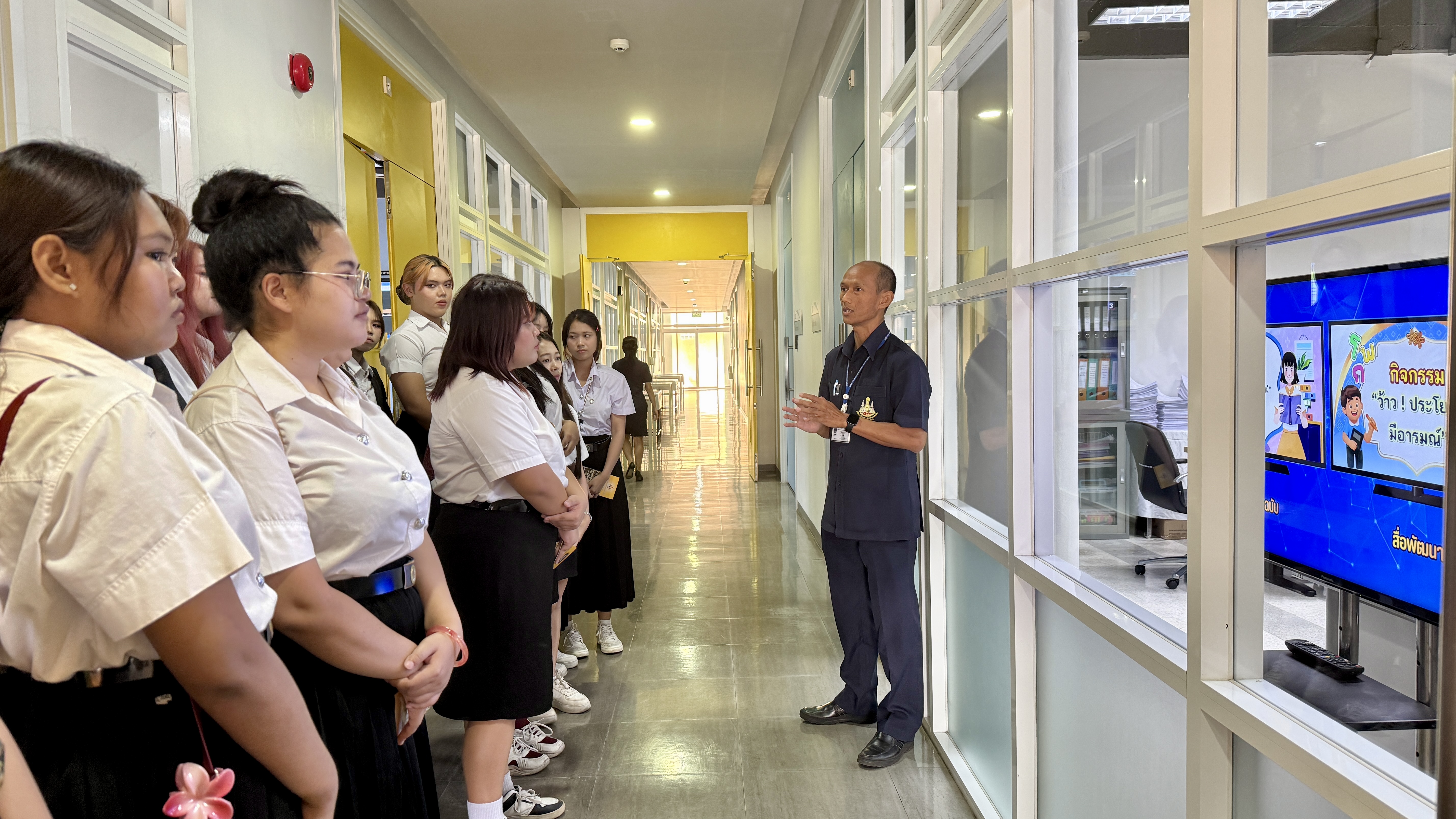 วันอังคารที่ 24 กุมภาพันธ์ 2569 เวลา 10.00 น. นายณัฐพงษ์ สวัสดี หัวหน้าฝ่ายสารสนเทศและสื่อสารองค์กร พร้อมด้วย นายก้องเกียรติ ส่องแสงจันทร์ หัวหน้าฝ่ายผลิตรายการ และนายอมรเทพ สุกสี หัวหน้าฝ่ายออกอากาศ ให้การต้อนรับคณะอาจารย์และนักศึกษา สาขาวิชานิเทศศาสตร์และนวัตกรรมสื่อ คณะวิทยาการจัดการ มหาวิทยาลัยราชภัฏหมู่บ้านจอมบึง จำนวน 42 คน ในโอกาสเข้าศึกษาดูงาน ณ สถานีวิทยุโทรทัศน์การศึกษาทางไกลผ่านดาวเทียม โดยคณะได้เยี่ยมชมกระบวนการผลิตรายการการเรียนการสอนทางไกลผ่านดาวเทียม (DLTV) ตั้งแต่ห้องเรียนต้นทาง ระดับชั้นมัธยมศึกษาปีที่ 1–3 ,ห้องควบคุมบันทึกรายการ ,ห้องควบคุมการออกอากาศ ,ห้องตัดต่อรายการ ,ห้องบันทึกรายการฉากจริง ,ห้องบันทึกรายการฉากเสมือนจริง และห้องนิทรรศการ DLTV