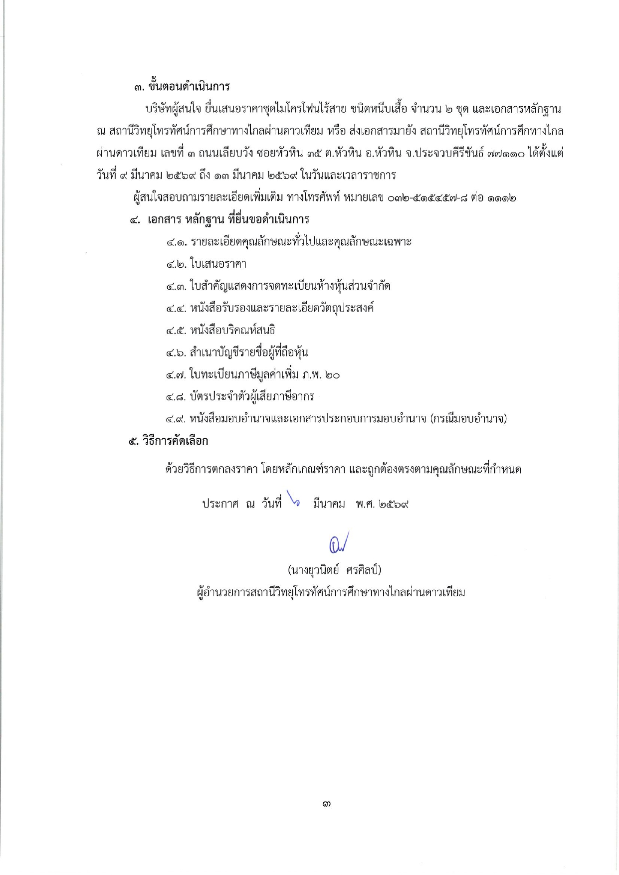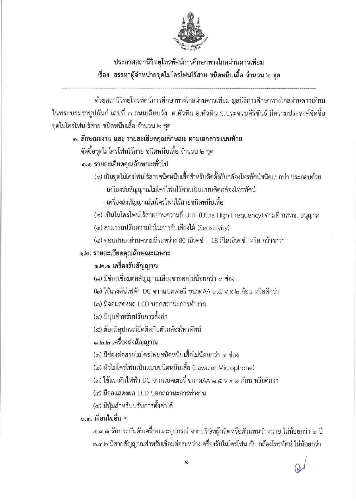 สถานีวิทยุโทรทัศน์การศึกษาทางไกลผ่านดาวเทียม มีความประสงค์สรรหาผู้จำหน่ายชุดไมโครโฟนไร้สาย