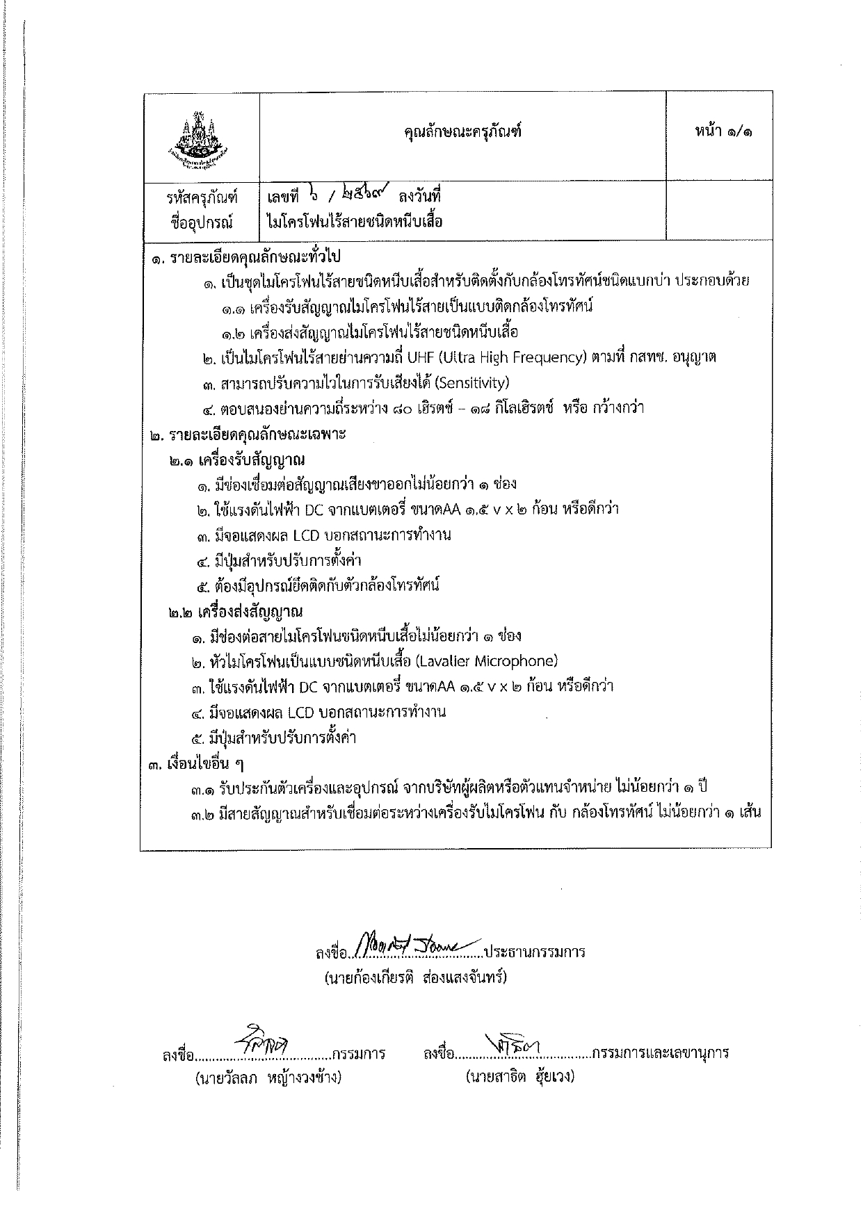 ความประสงค์สรรหาผู้จำหน่ายชุดไมโครโฟนไร้สาย ชนิดหนีบเสื้อ จำนวน 2 ชุด