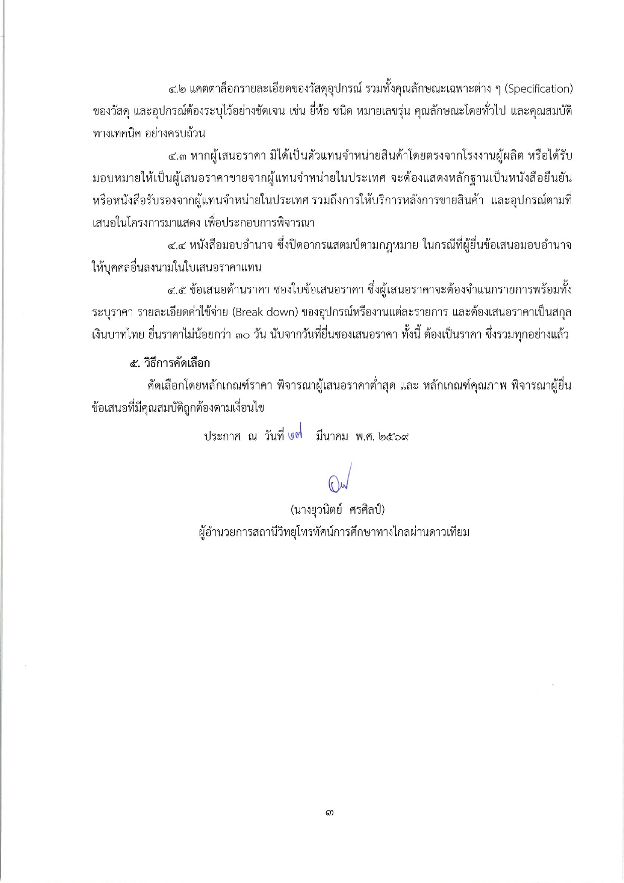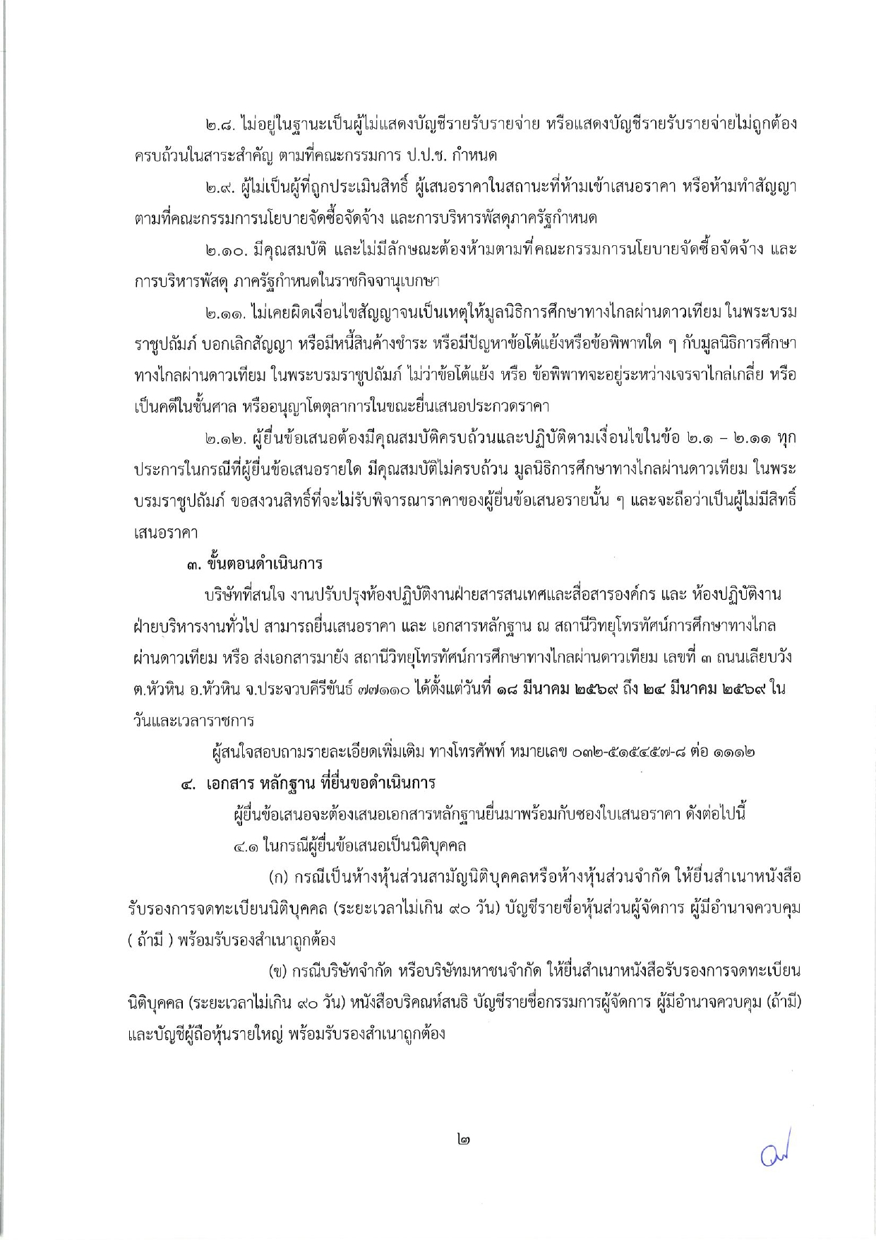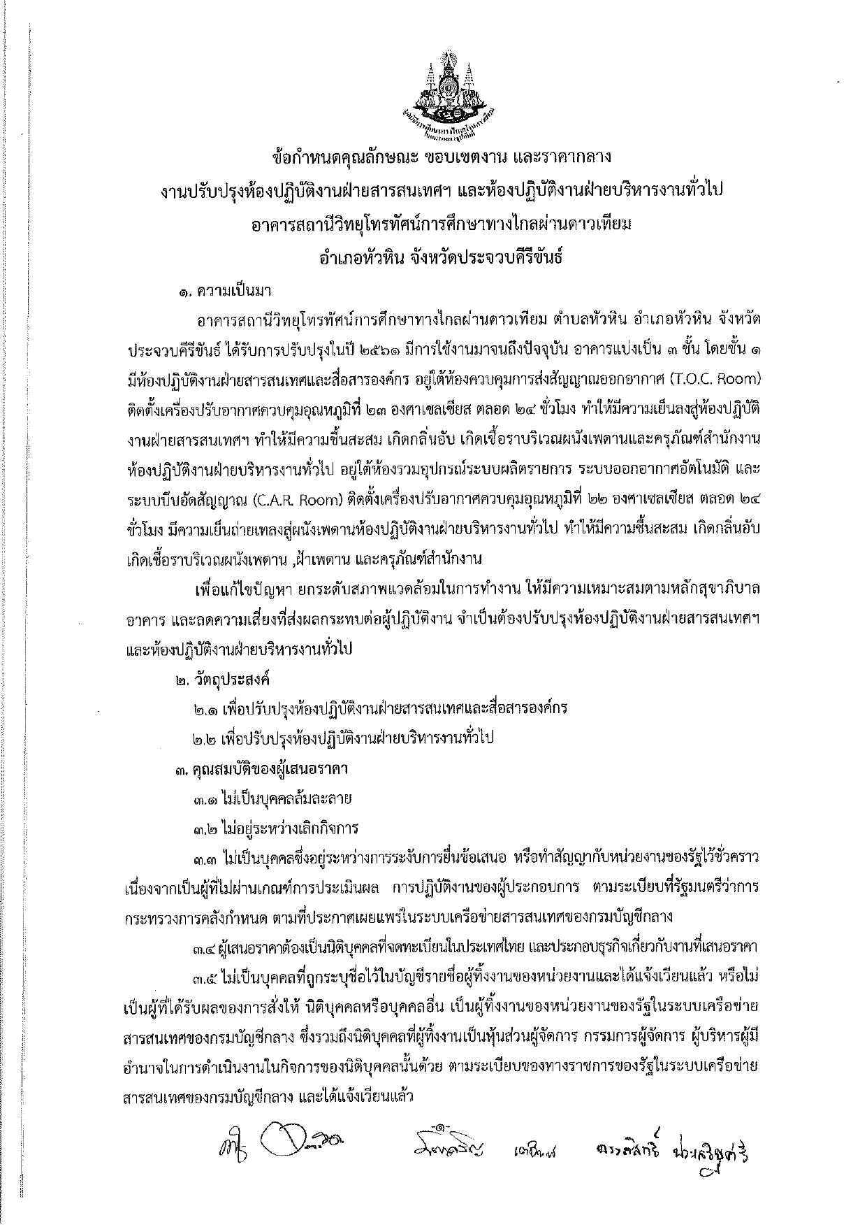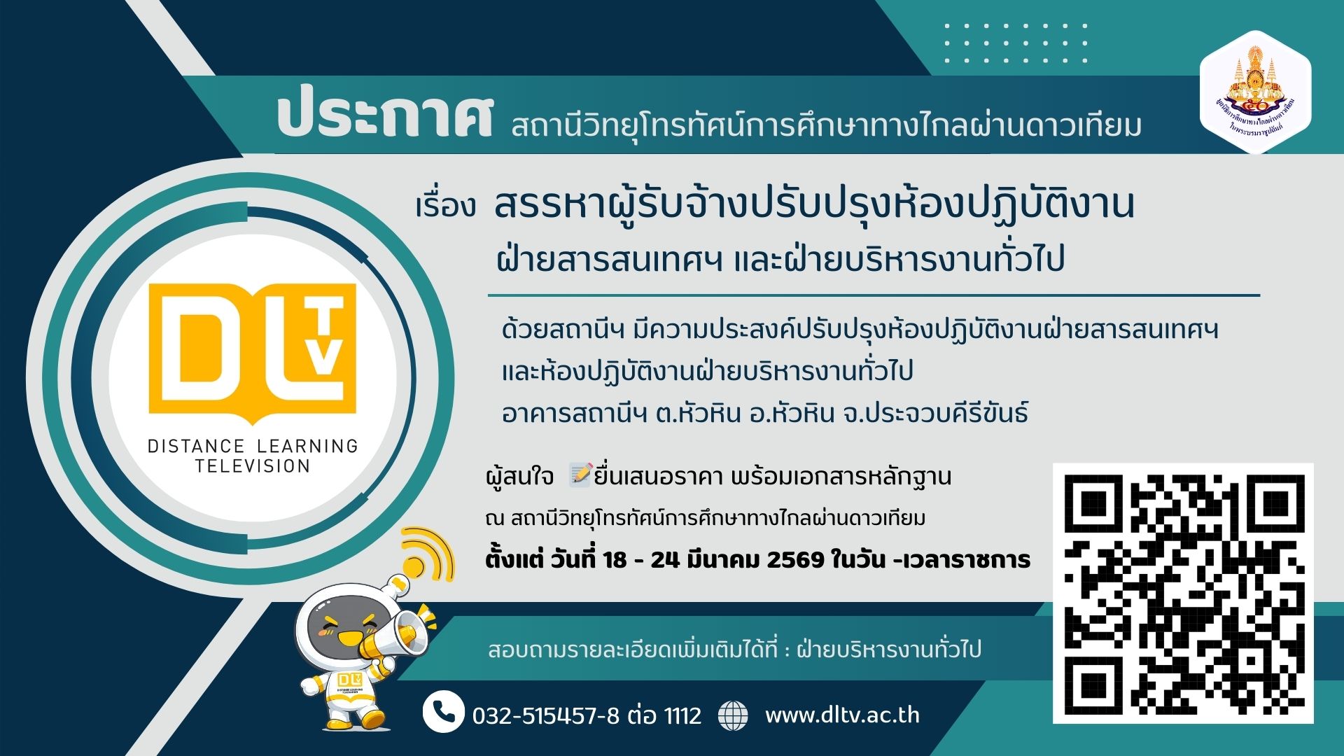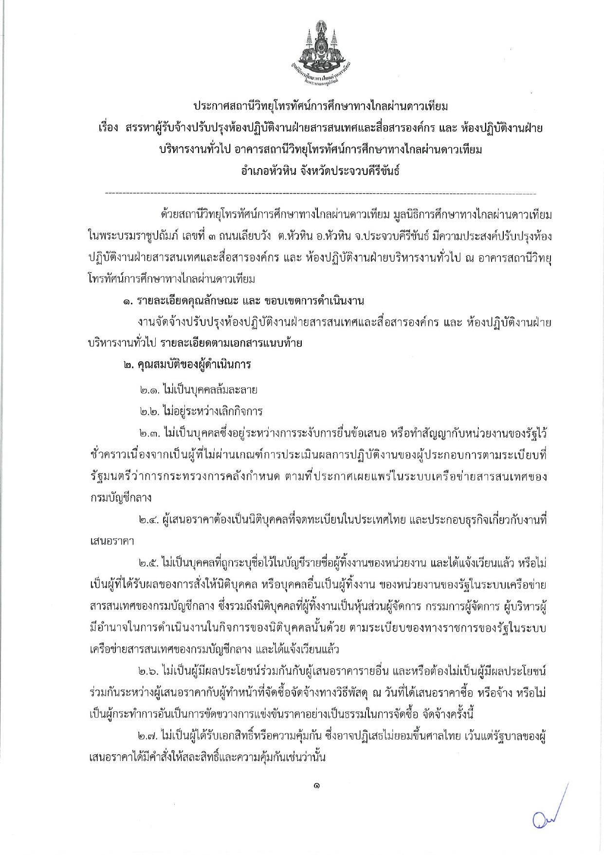 ประกาศสถานีวิทยุโทรทัศน์การศึกษาทางไกลผ่านดาวเทียม เรื่อง สรรหาผู้รับจ้างปรับปรุงห้องปฏิบัติงาน