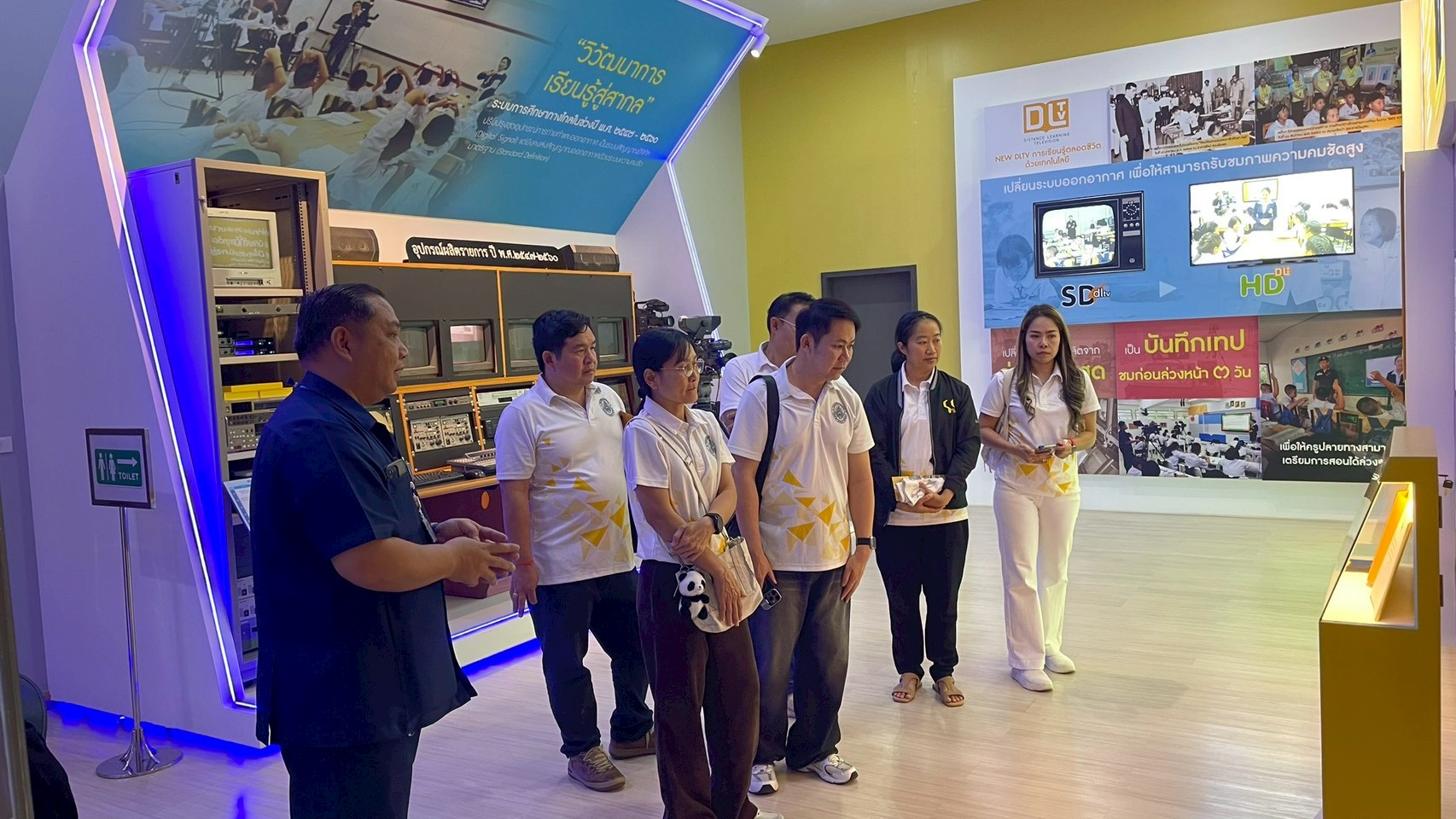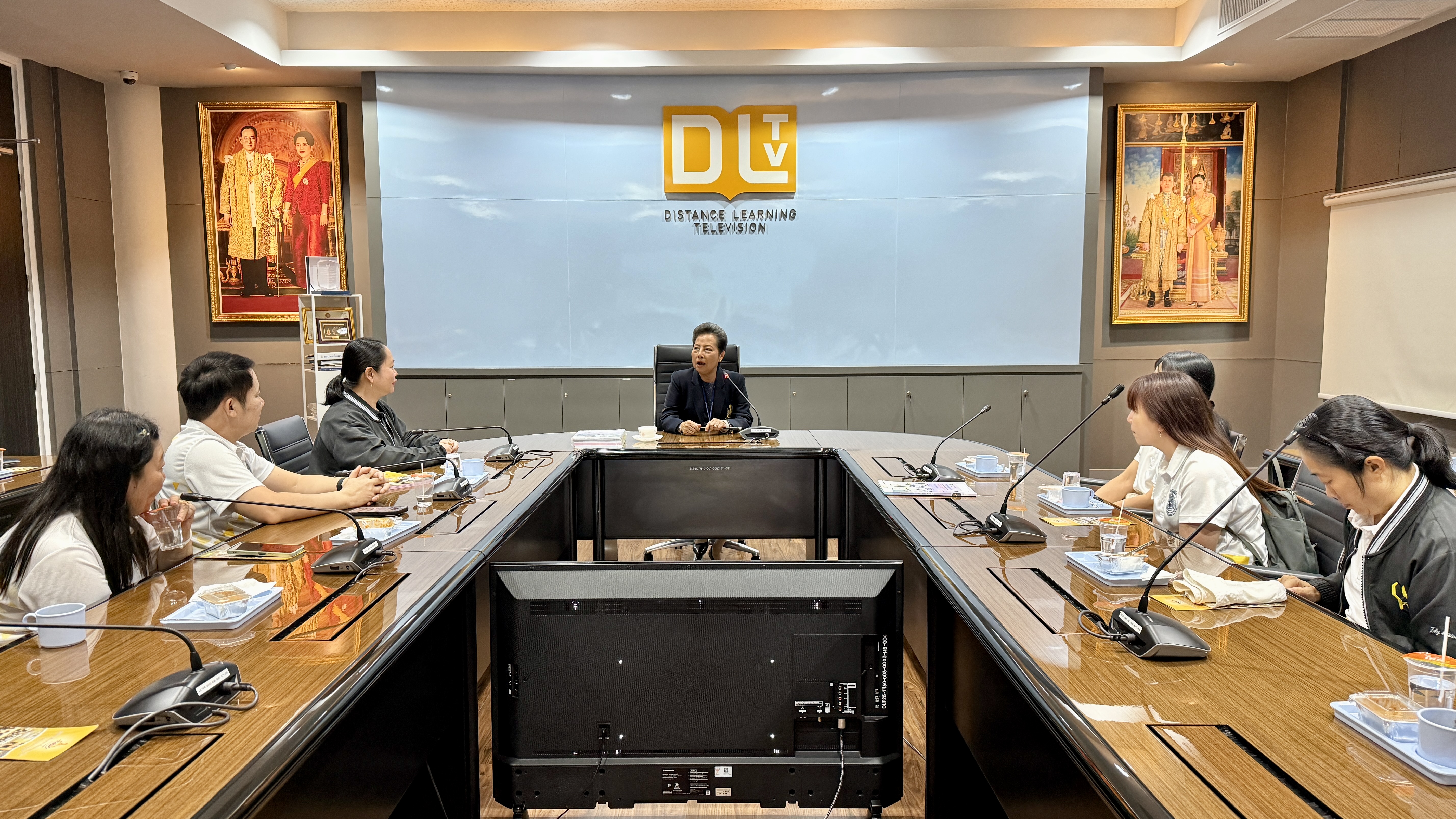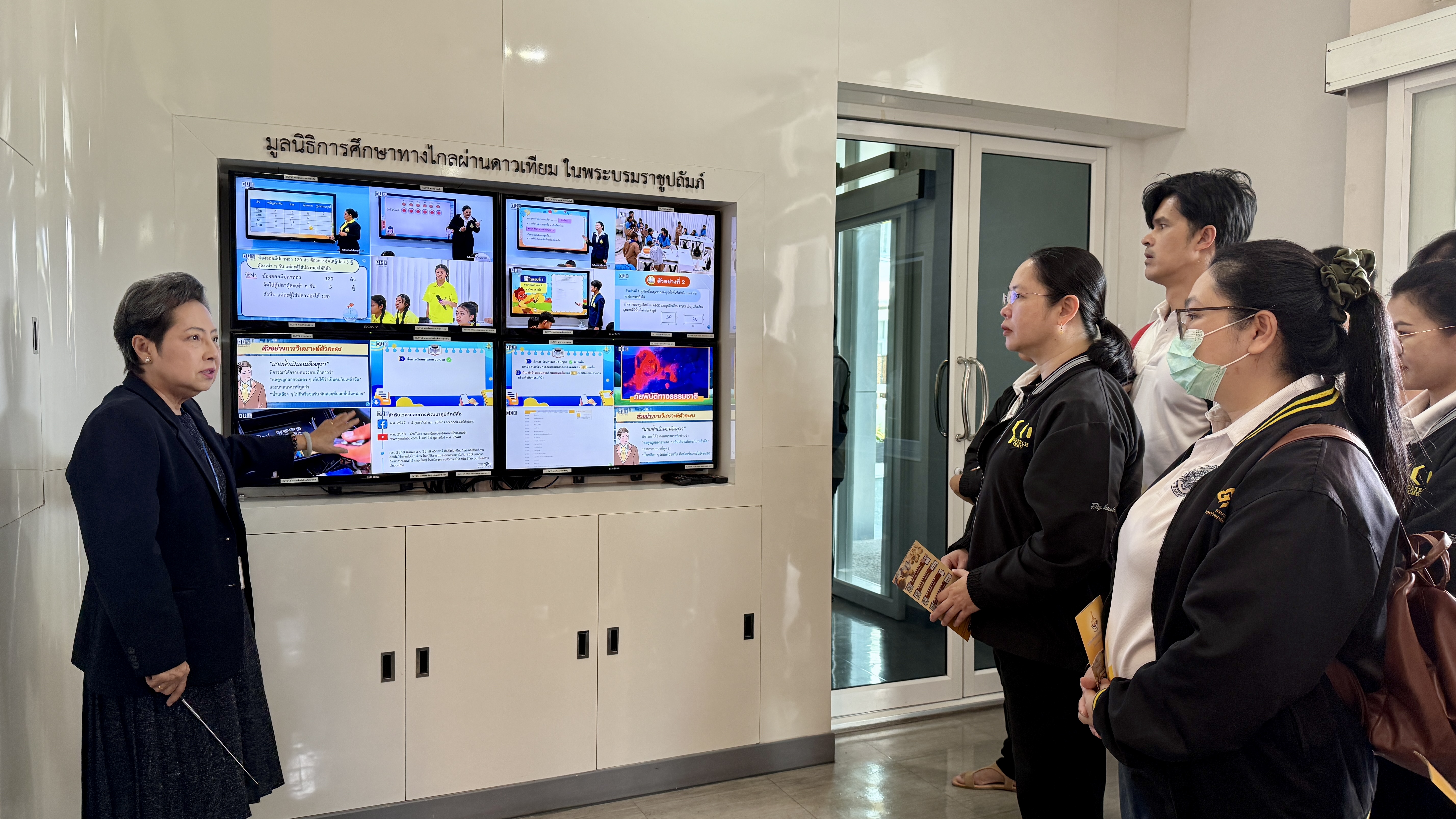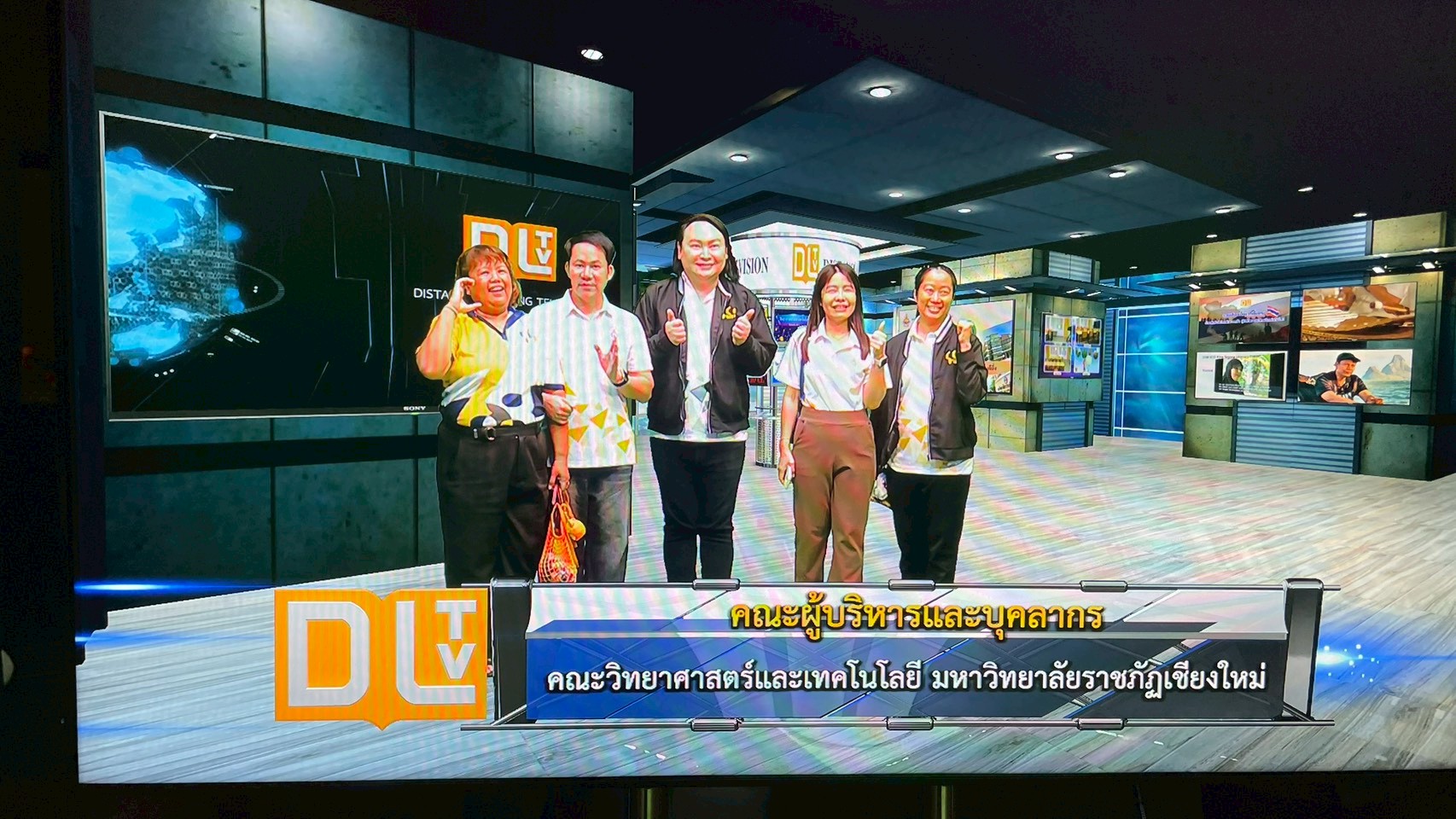 โอกาสนี้ นางยุวนิตย์ ศรศิลป์ ผู้อำนวยการสถานีฯ และนายเกรียงไกร แสงทอง ผู้ช่วยผู้อำนวยการสถานีฯ ให้การต้อนรับและนำเยี่ยมชมการดำเนินงานของสถานีฯ ในแต่ละส่วนงาน ตั้งแต่กระบวนการผลิตสื่อการเรียนการสอน ขั้นตอนการบันทึกรายการ การตัดต่อรายการ การออกอากาศ พร้อมทั้งนำเยี่ยมชมห้องนิทรรศการ DLTV รับชมวีดิทัศน์แนะนำมูลนิธิฯ และรับฟังการบรรยายสรุปการดำเนินงาน ทั้งนี้ ดร.ภาณุพัฒน์ ชัยวร รองคณบดีมหาวิทยาลัยราชภัฏเชียงใหม่ ได้กล่าวแสดงความขอบคุณ คณะผู้บริหารและเจ้าหน้าที่สถานีฯ เป็นอย่างสูงที่ให้การต้อนรับและนำชมกระบวนการการเรียนการสอนทางไกล ร่วมถึงได้ให้ความรู้ในการปฏิบัติงานแบบบูรณาการในการเข้าศึกษาดูงานครั้งนี้