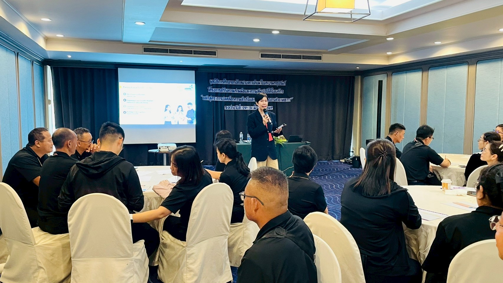 การอบรมครั้งนี้รวบรวม “สามฟันเฟืองสำคัญ” ของการขับเคลื่อนการศึกษาทางไกลผ่านดาวเทียม ได้แก่ เจ้าหน้าที่มูลนิธิฯ (สำนักงานกทม.) เจ้าหน้าที่สถานีวิทยุโทรทัศน์การศึกษาทางไกลผ่านดาวเทียม (DLTV) และครูโรงเรียนวังไกลกังวล ในพระบรมราชูปถัมภ์ จาก “ความแตกต่างของผู้คน” สู่ “พลังของความเข้าใจ” กิจกรรมมุ่งเน้นการเสริมสร้างความเข้าใจตนเองและผู้อื่น ผ่านการประเมินบุคลิกภาพตามแนวคิด MBTI ควบคู่กับกิจกรรมเชิงปฏิบัติที่ช่วยให้ผู้เข้าอบรม สามารถนำผลลัพธ์ไปประยุกต์ใช้ในการสื่อสาร การทำงานร่วมกัน และการบริหารความแตกต่างระหว่างบุคคลได้อย่างมีประสิทธิภาพ การอบรมครั้งนี้นับเป็นอีกก้าวสำคัญ ในการพัฒนาศักยภาพบุคลากรของมูลนิธิฯ อย่างเป็นระบบ โดยมุ่งสร้างความเข้มแข็งจาก “คน” ซึ่งเป็นหัวใจของการขับเคลื่อนองค์กร