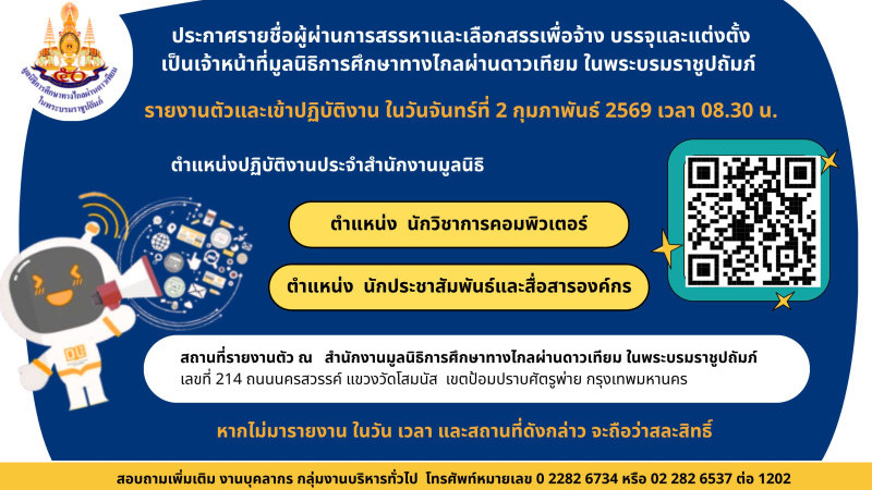 ประกาศรายชื่อผู้ผ่านการสรรหาและเลือกสรรเพื่อจ้าง บรรจุและแต่งตั้งเป็นเจ้าหน้าที่มูลนิธิฯ