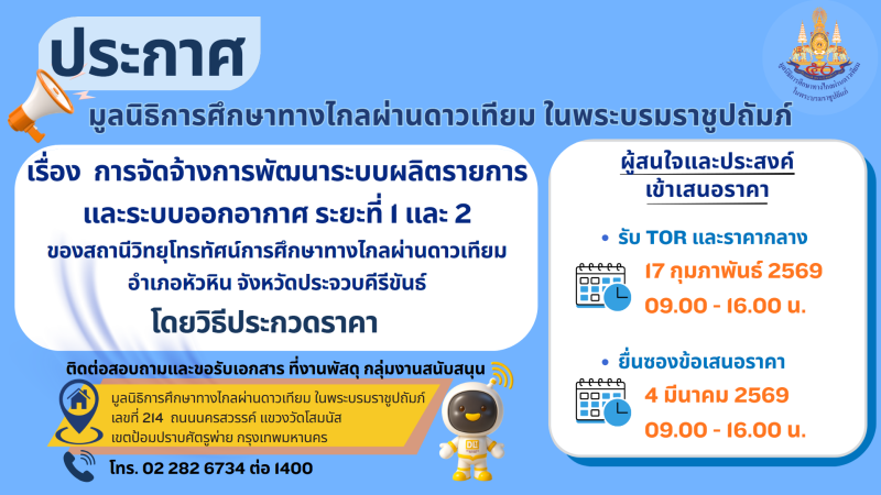 ประกาศสถานีวิทยุโทรทัศน์การศึกษาทางไกลผ่านดาวเทียม รับสมัครบุคคล