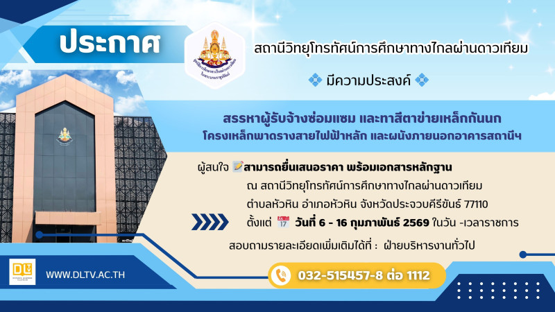 ประกาศสถานีวิทยุโทรทัศน์การศึกษาทางไกลผ่านดาวเทียม มีความประสงค์สรรหาผู้รับจ้างซ่อมแซม
