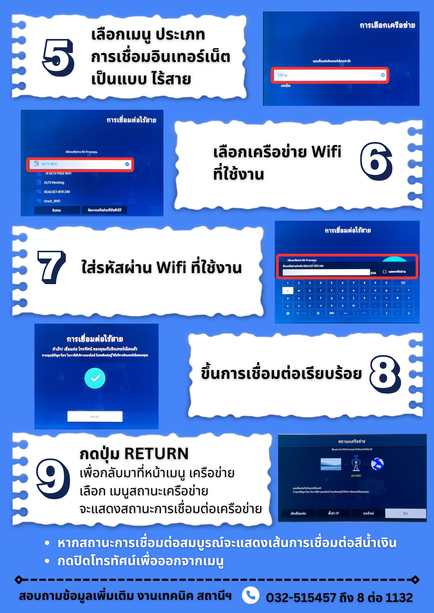 ดำเนินการติดต่อกลับ คุณจันทร์สุดา แจ้งรหัสไวไฟ เจ้าหน้าที่สารสนเทศประสานงานและดำเนินการตรวตสอบสายสัญญาณ Internet พบไม่มีการเสียบสายสัญาณเขากับตัวอุปกรณ์กระจายสัญญาณ แนะนำทดลองเสียบสายสัญญาณ หากยังไม่สามารถใช้งานได้ แนะนำเปลี่ยนสายสัญญาณ เนื่องจากสภาพสายไม่สมบูรณ์ ขอบคุณสำหรับการติดตามรับชม DLTV ค่ะ