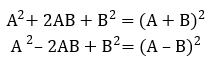 การแยกตัวประกอบของพหุนามดีกรีสองที่เป็นกำลังสองสมบูรณ์ ในกรณีทั่วไป ถ้าให้ A แทนพจน์หน้า และ B แทนพจน์หลัง จะแยกตัวประกอบของพหุนามดีกรีสองที่เป็นกำลังสองสมบูรณ์ได้ตามสูตร ดังนี้
