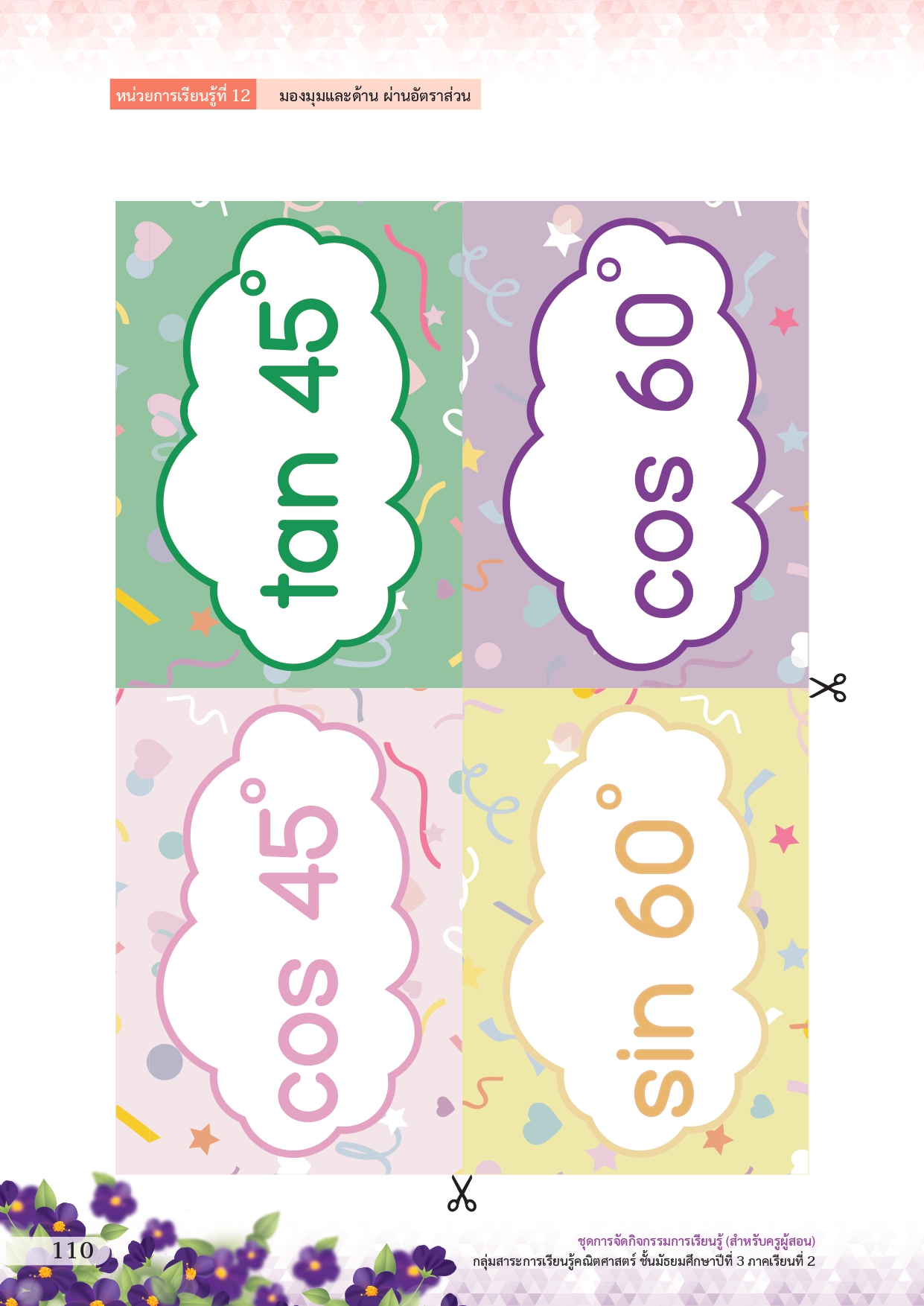 นักเรียนสามารถบอกค่าของอัตราส่วนตรีโกณมิติของมุมที่มีขนาด 30 องศา  45 องศา และ 60 องศา