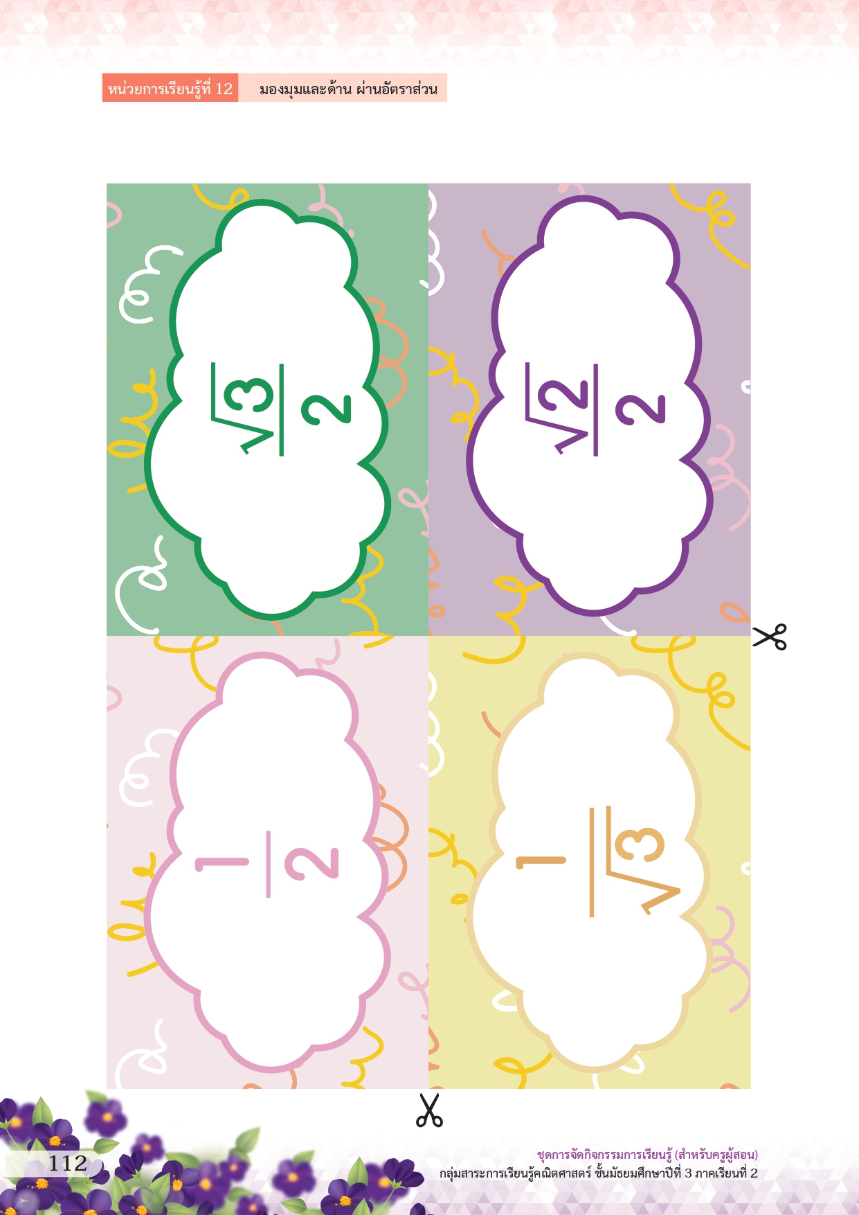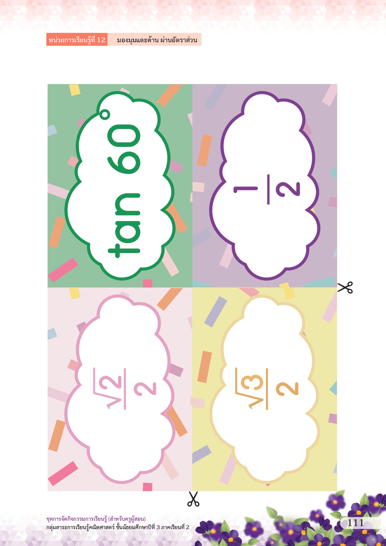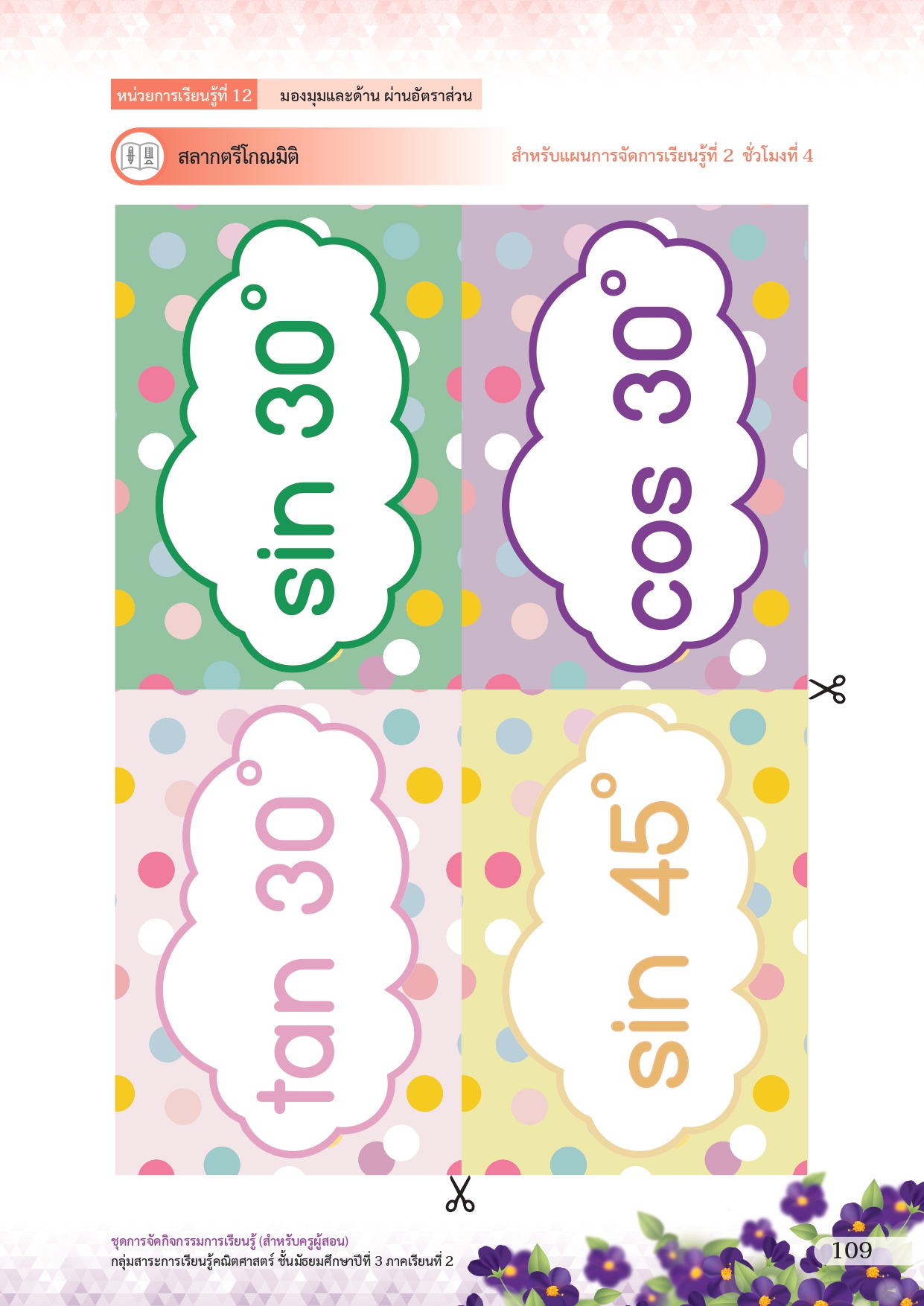 นักเรียนสามารถบอกค่าของอัตราส่วนตรีโกณมิติของมุมที่มีขนาด 30 องศา 45 องศา และ 60 องศา
