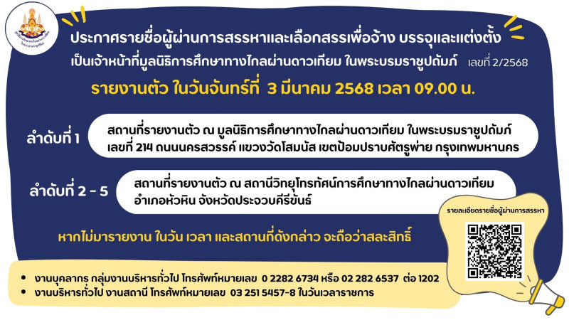 ประกาศรายชื่อผู้มีสิทธิเข้ารับการสรรหาและเลือกสรร