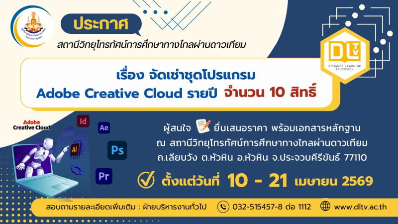 ประกาศสถานีวิทยุโทรทัศน์การศึกษาทางไกลผ่านดาวเทียม เรื่อง จัดเช่าชุดโปรแกรม Adobe Creative Cloud รายปี จำนวน 10 สิทธิ์